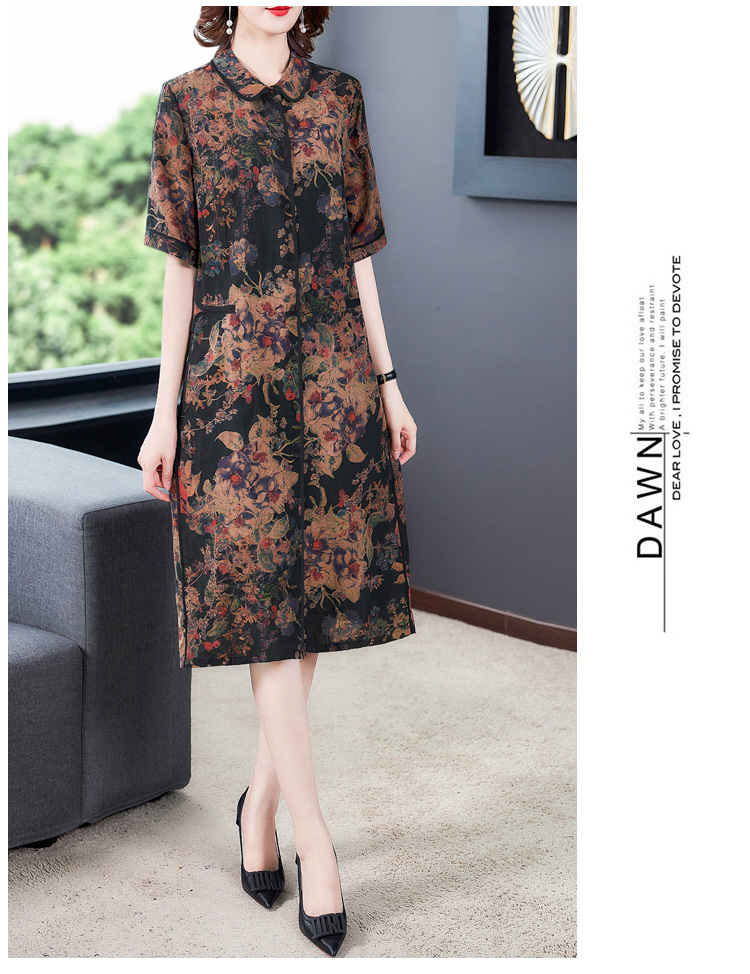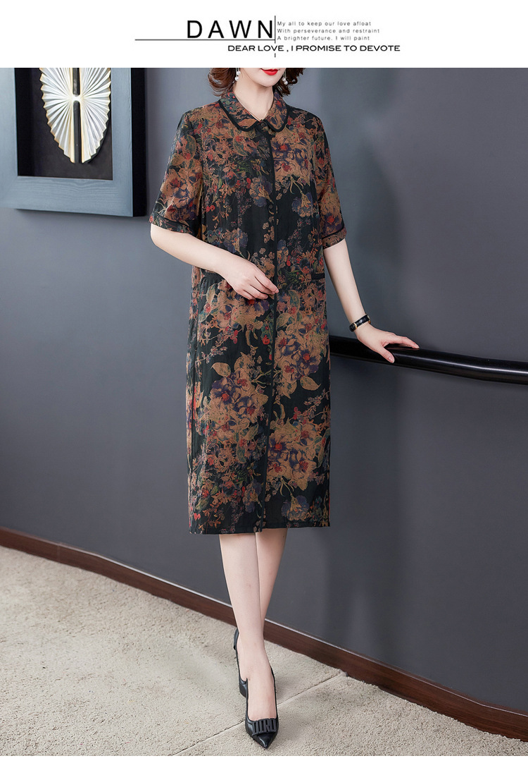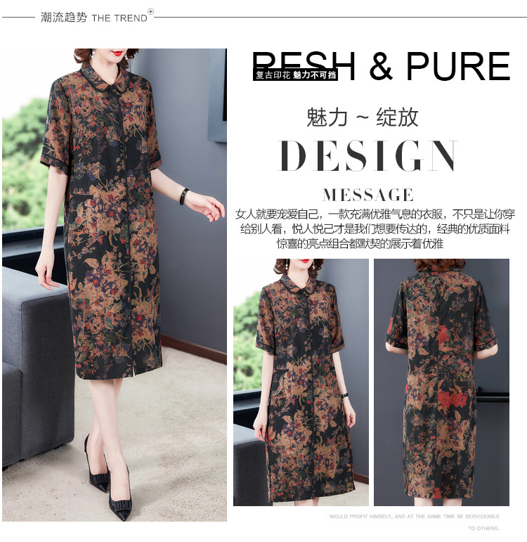 AHM-aryg1109夏新款大码妈妈装龟裂纹香云纱气质修身连衣裙