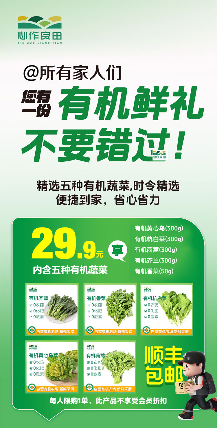 在这个追求健康与自然并重的时代,我们为您精心筹备了一场味蕾与健康的双重盛宴——有机蔬菜大礼包!只需29.9元,江浙沪包邮,直接将大自然的纯净与营养送至您的家门。