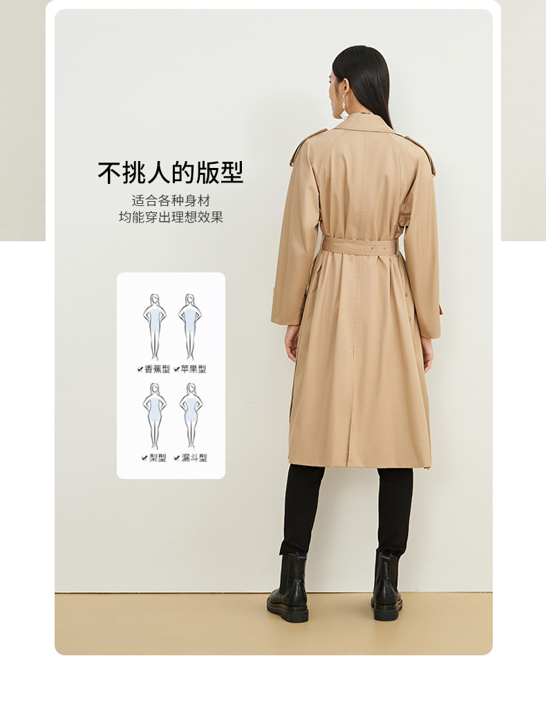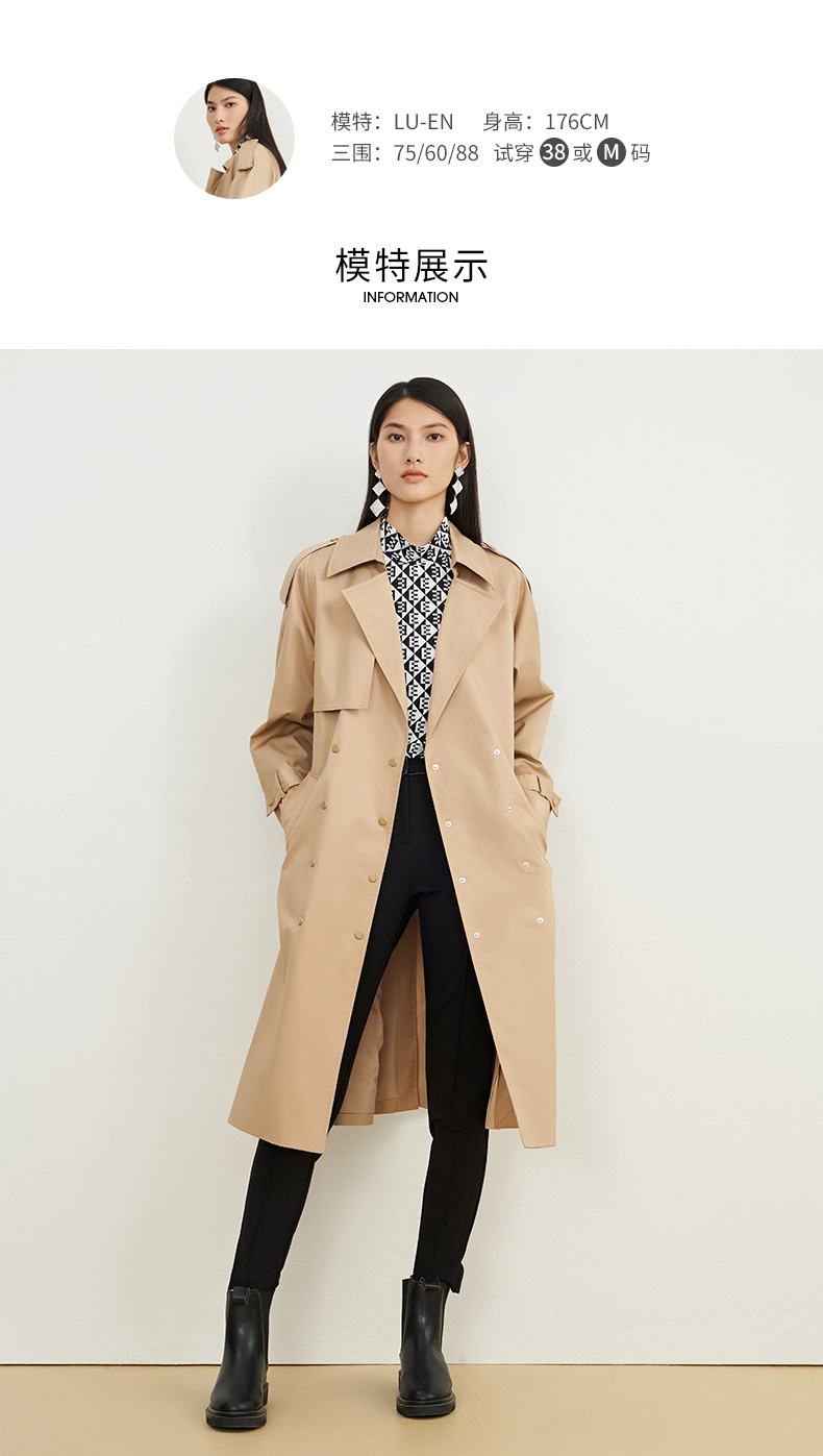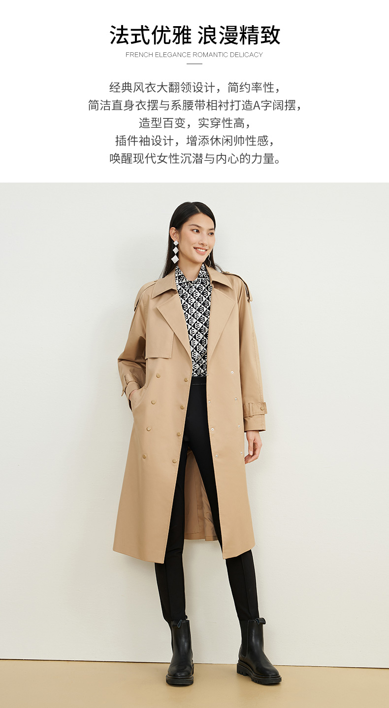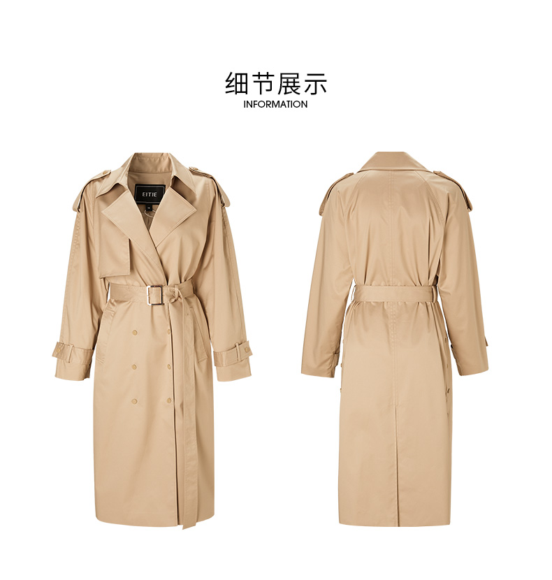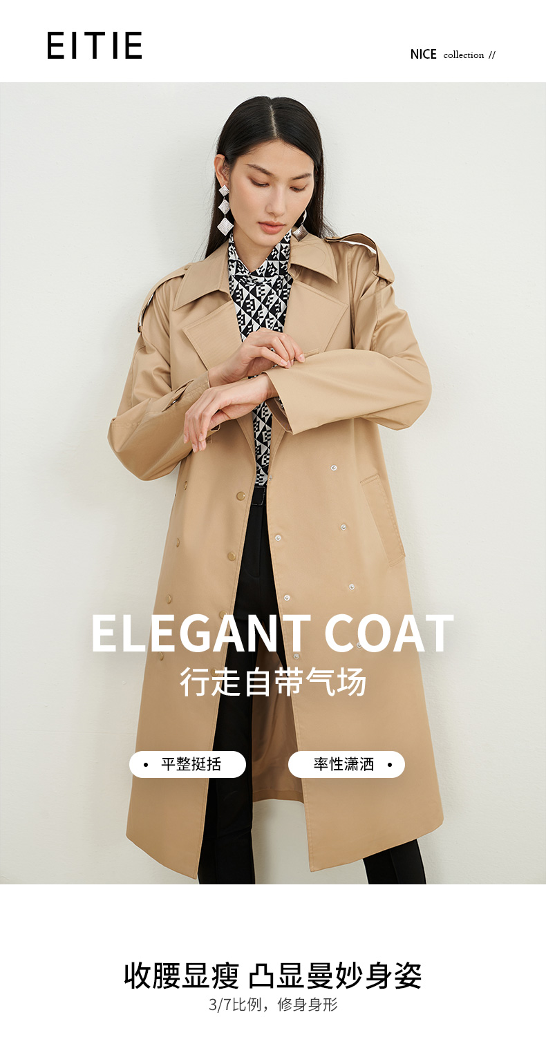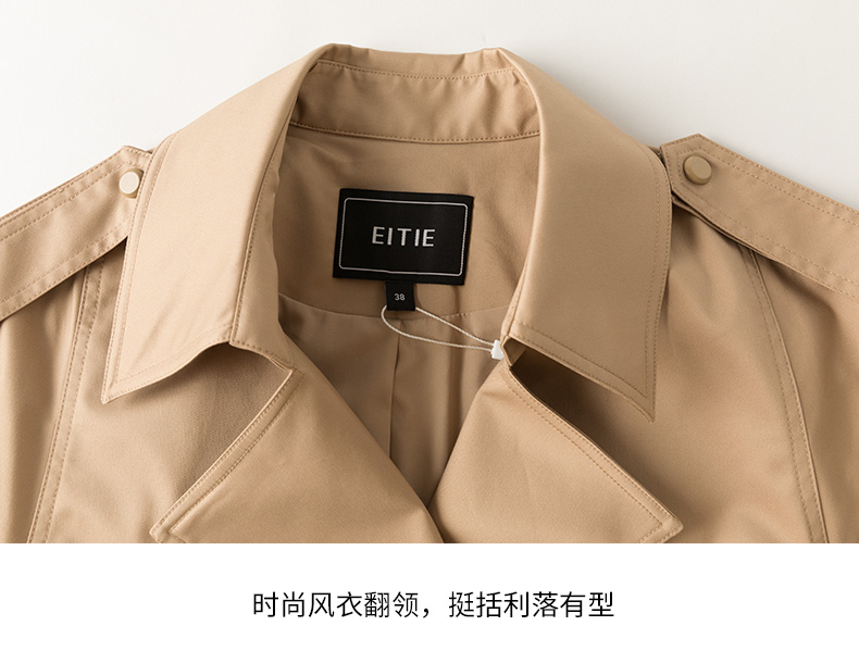 EITIE爱特爱秋季新款女装气质修身纯色风衣女中长款6704406