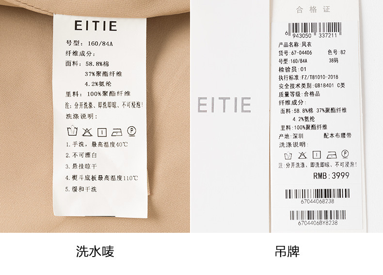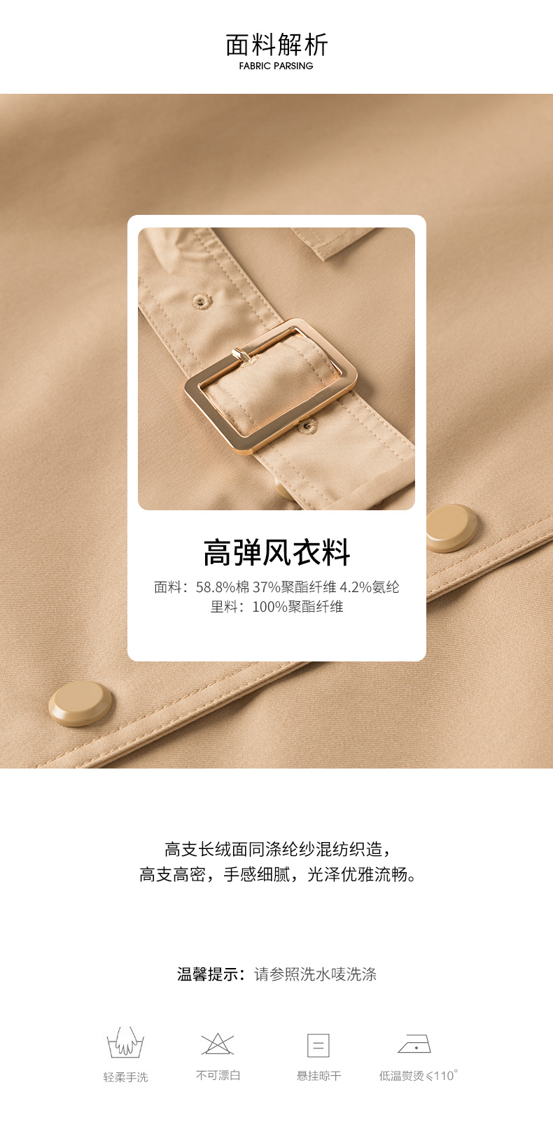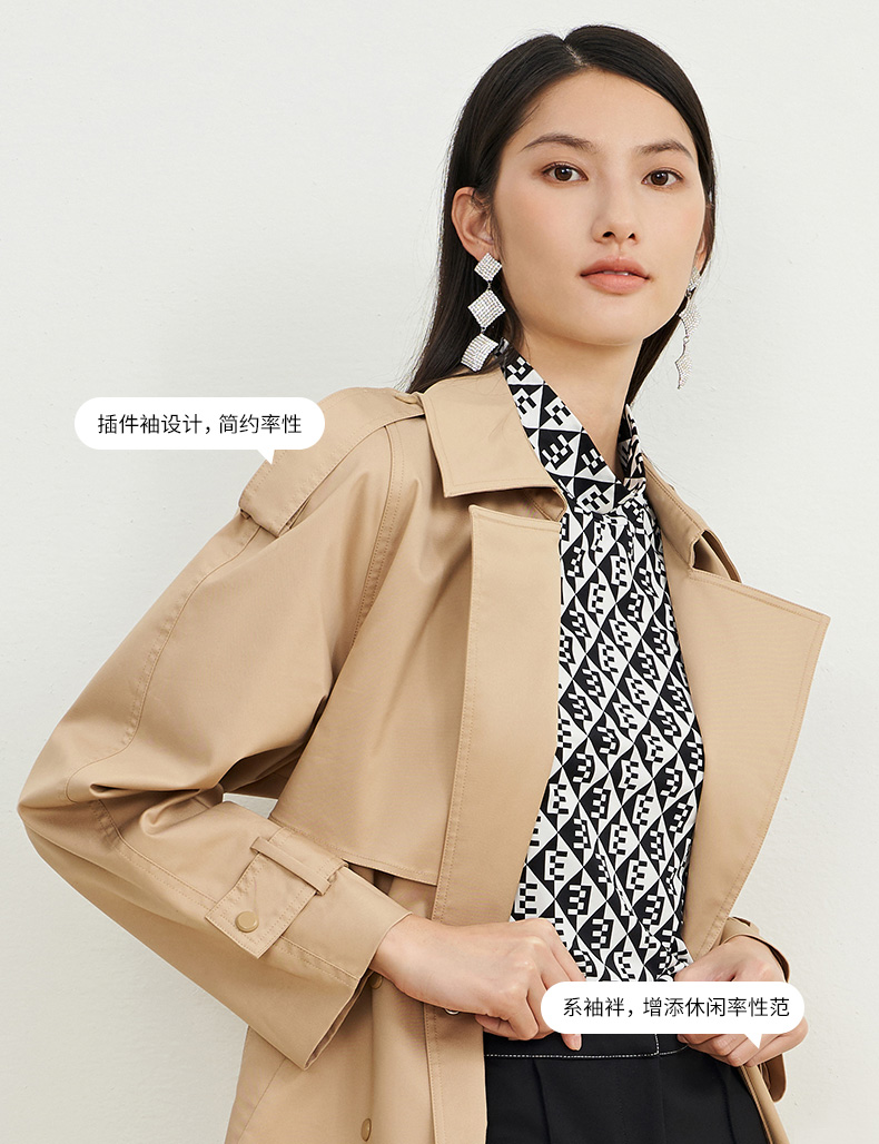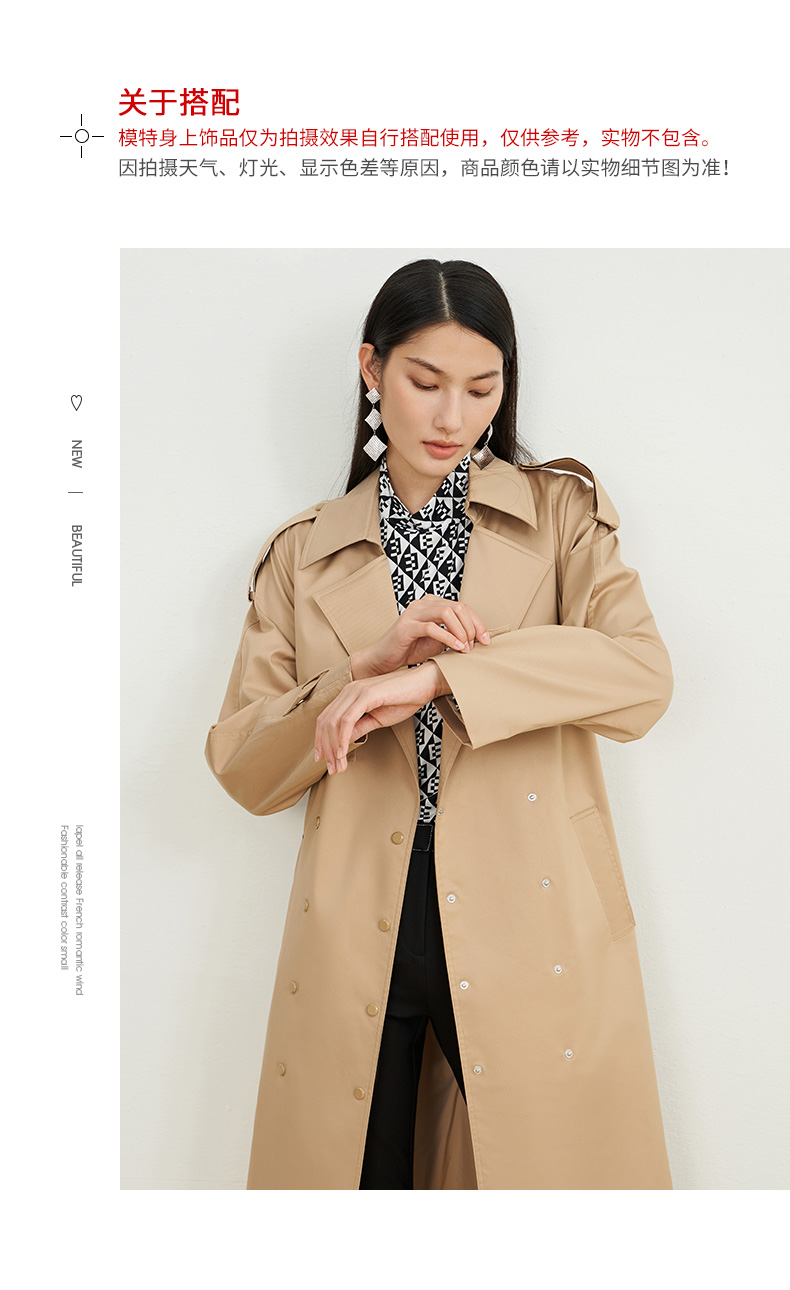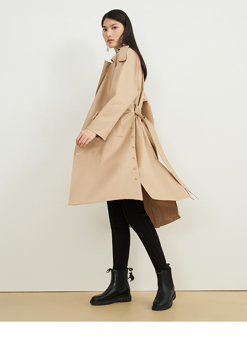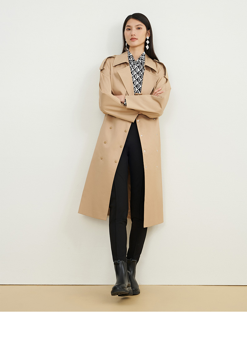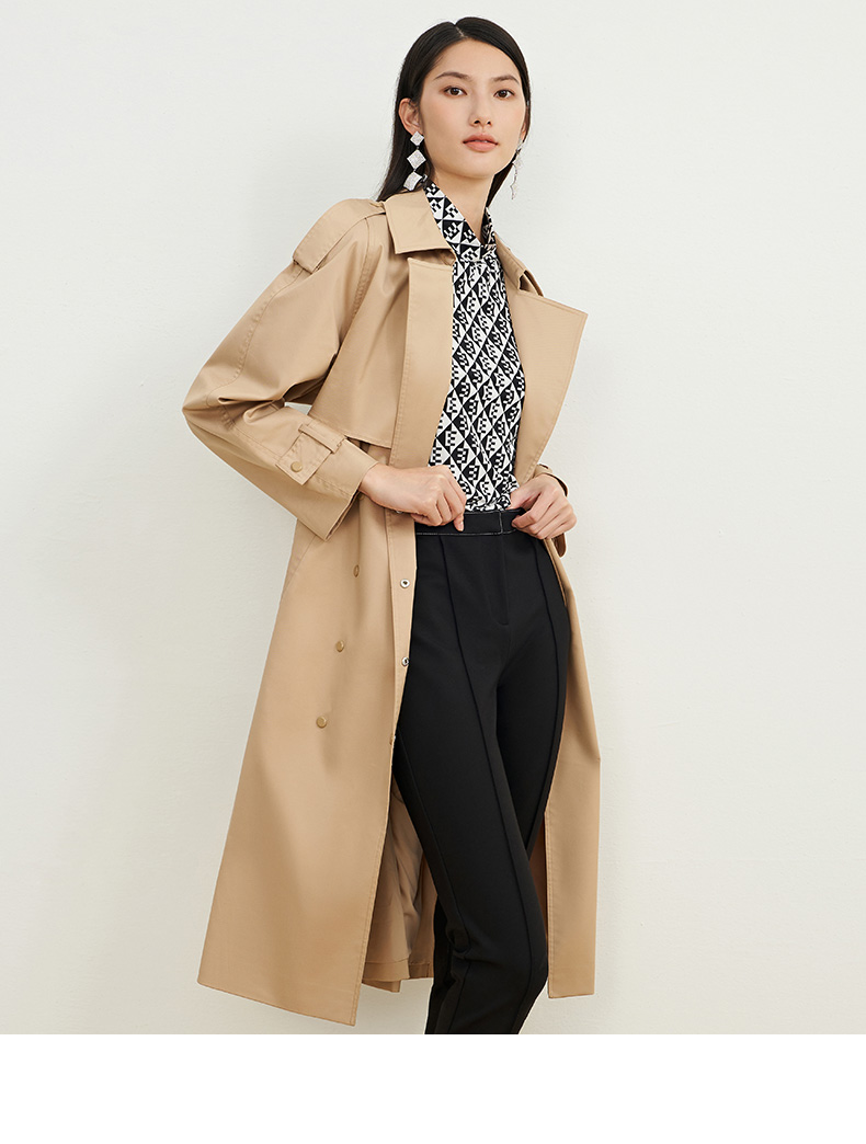 EITIE爱特爱秋季新款女装气质修身纯色风衣女中长款6704406