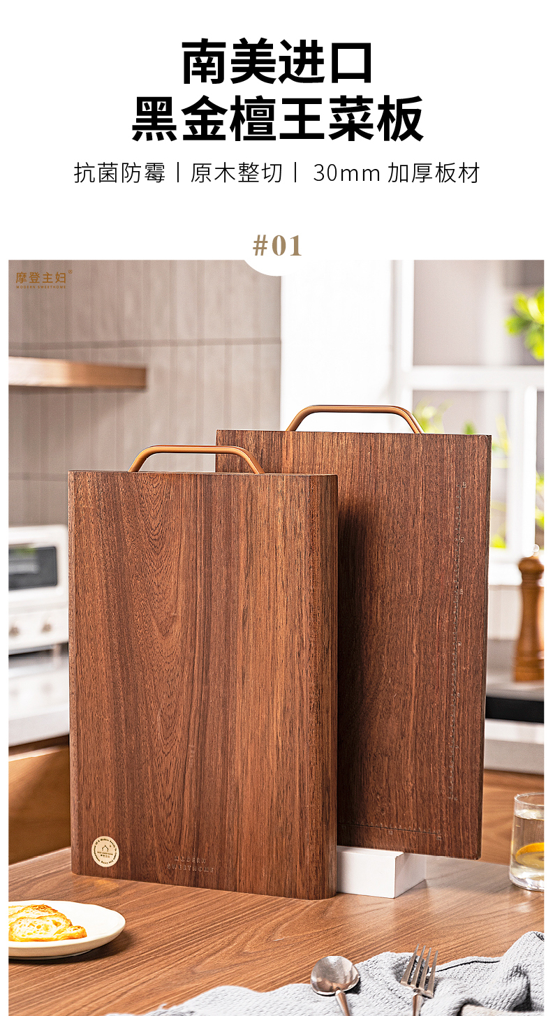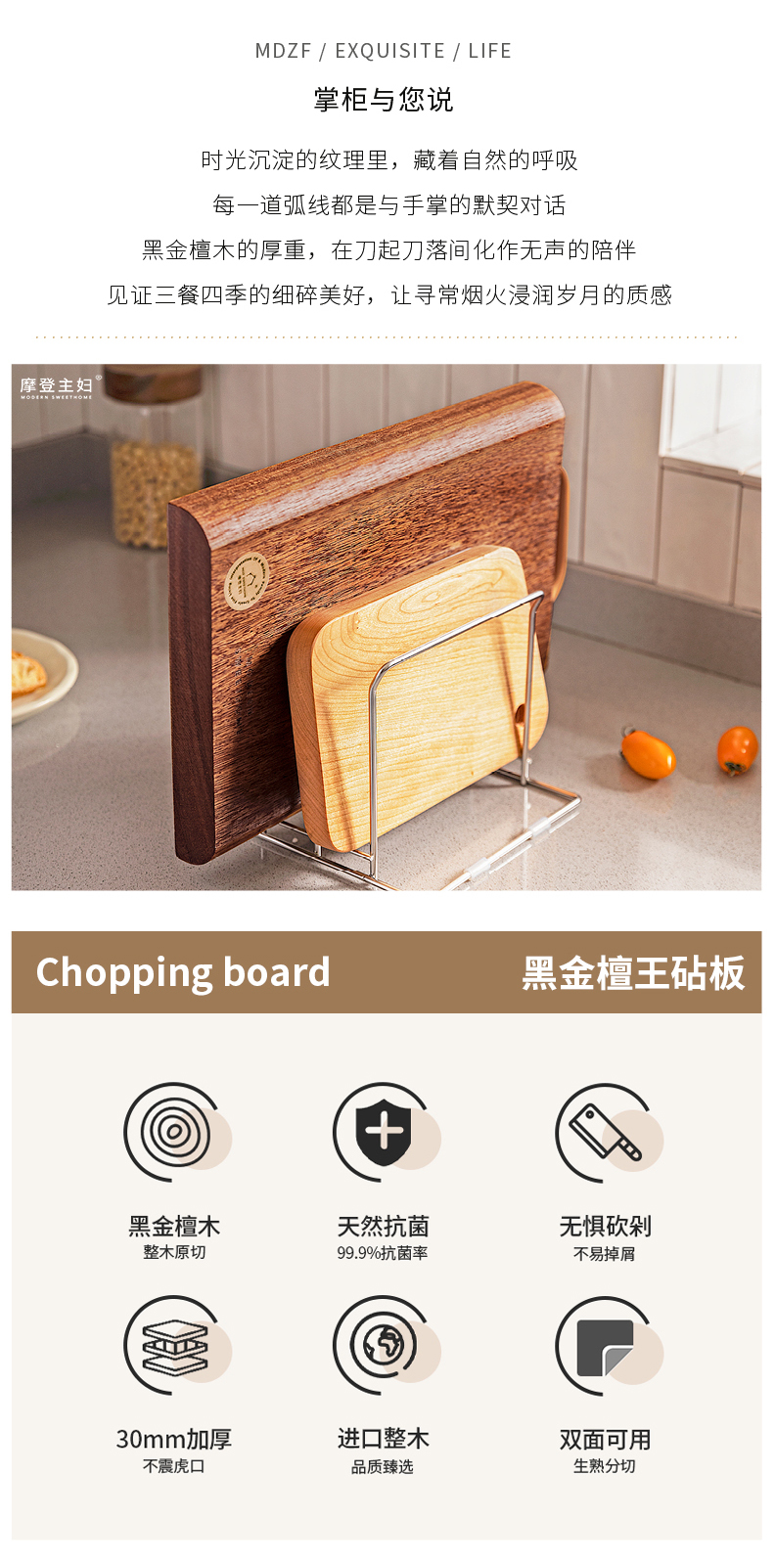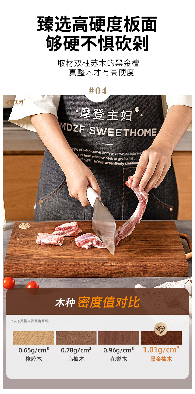 摩登主妇黑金檀木菜板厨房家用防霉抗菌切菜板食品级实木案板砧板