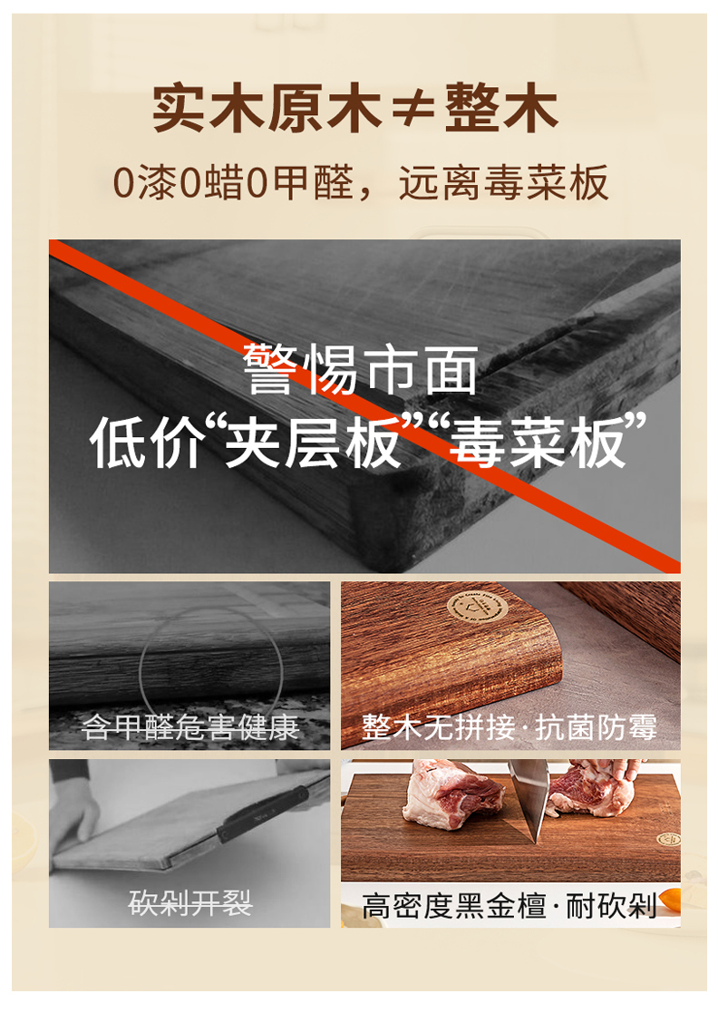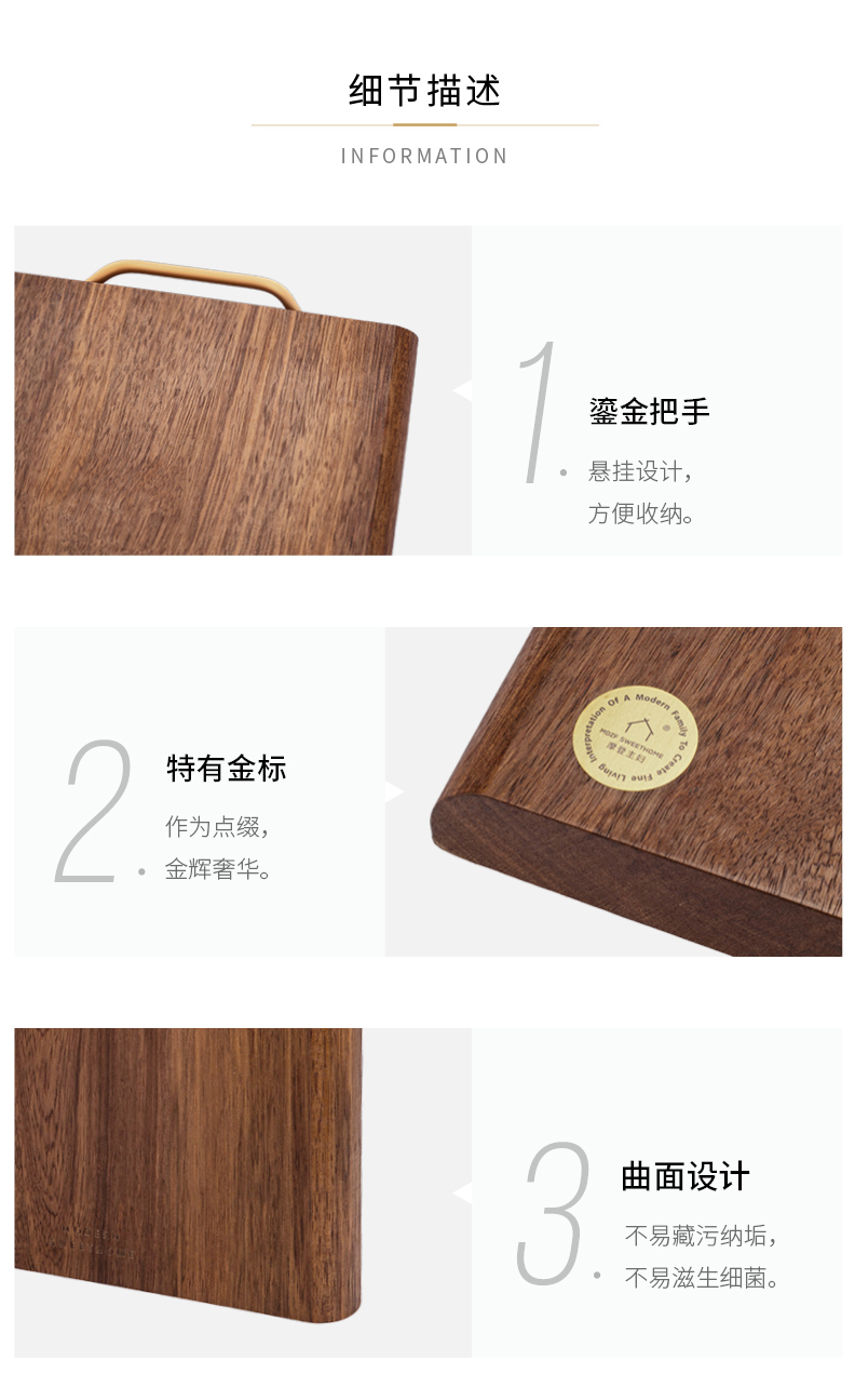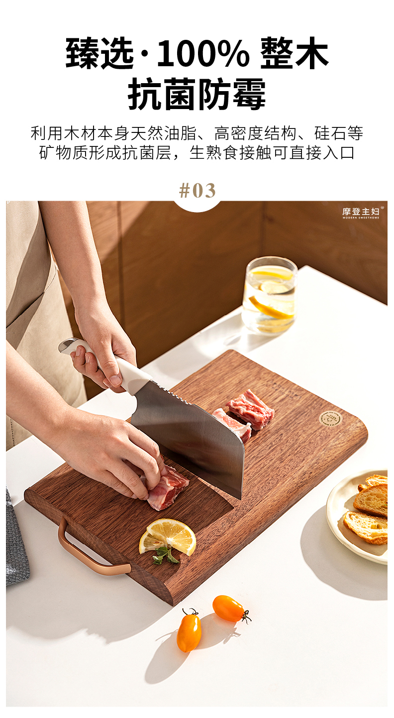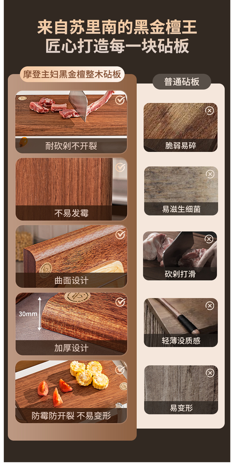摩登主妇黑金檀木菜板厨房家用防霉抗菌切菜板食品级实木案板砧板