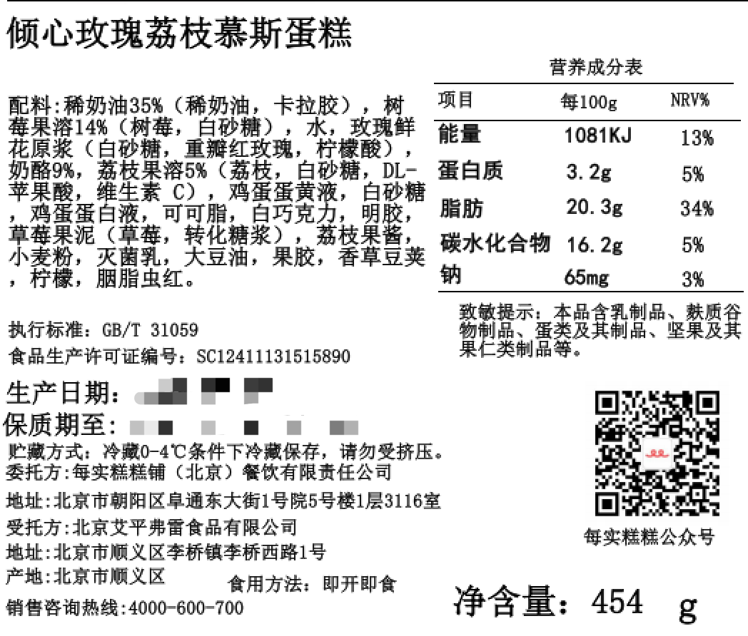 倾心 玫瑰荔枝慕斯蛋糕