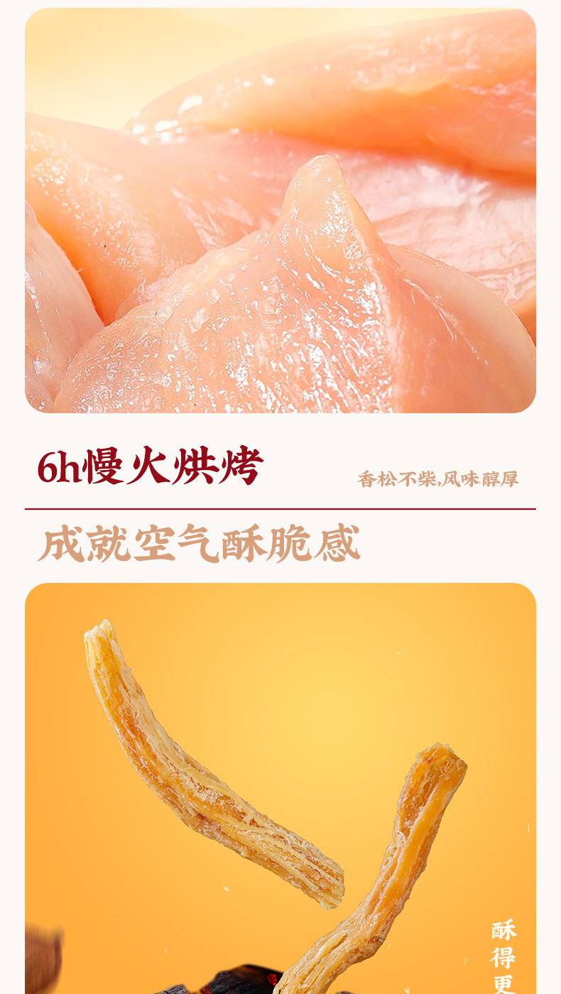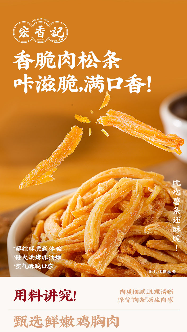 【斌哥优选】香脆肉松酥条。不掺一点淀粉。纯肉手撕成条,肉感扎实,口口香脆。烘烤非油炸,更酥脆更鲜香。一袋里面六小包,独立包装。
