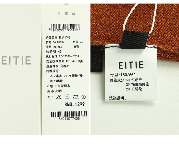 EITIE爱特爱冬季新款气质显瘦百搭垂坠羊毛针织A版半身裙女裙6401107