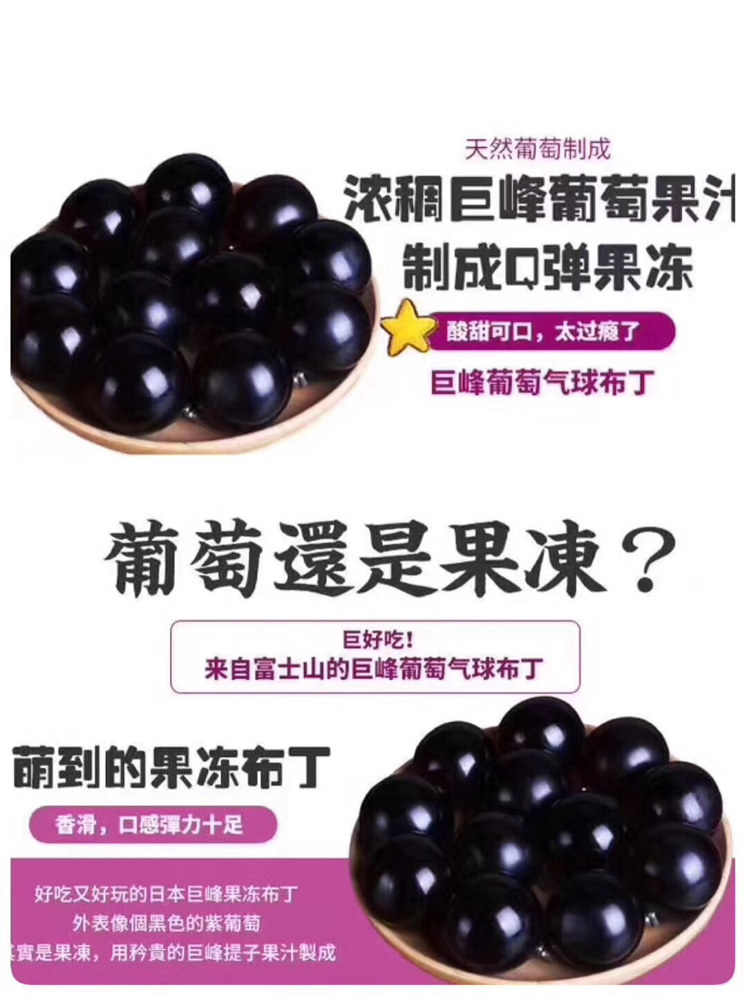 日本巨峰葡萄气球布丁——来自🇯🇵富士山🗻,隔着包装袋都能闻到浓郁的香味,又好玩又好吃的,轻轻戳一下,就凳滴一下弹出来啦!小盆友们最喜欢的!