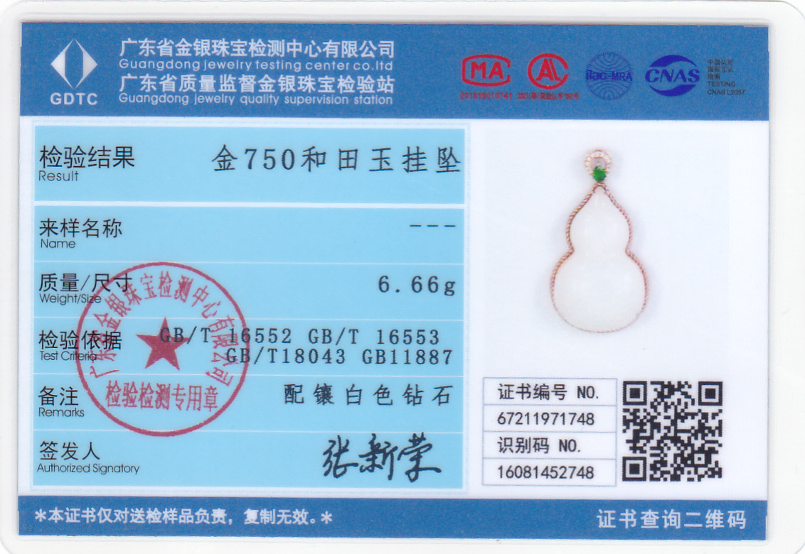 玉石尺寸:单面葫芦mm 配镶:钻石