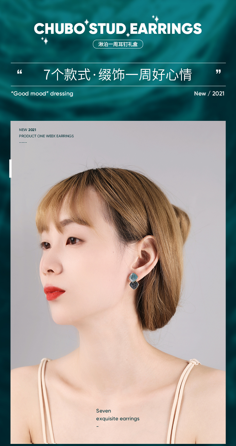 【时尚百搭】湫泊一周耳钉礼盒轻松搭配一周不重样精美礼盒包装提升气质