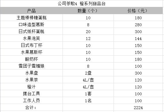 公司茶歇4 橙系列甜品台 (提前7天预订)