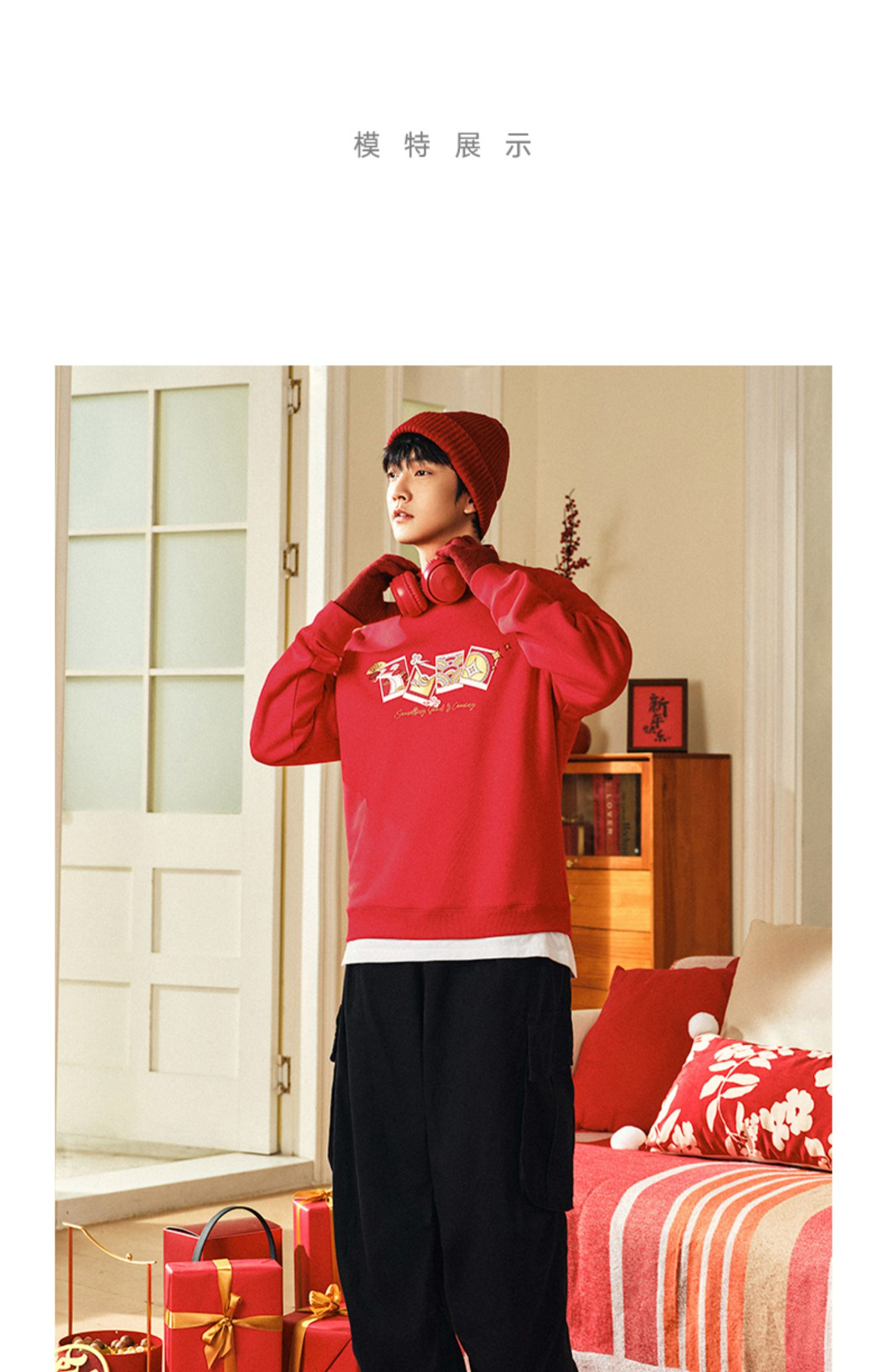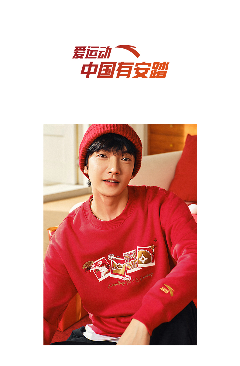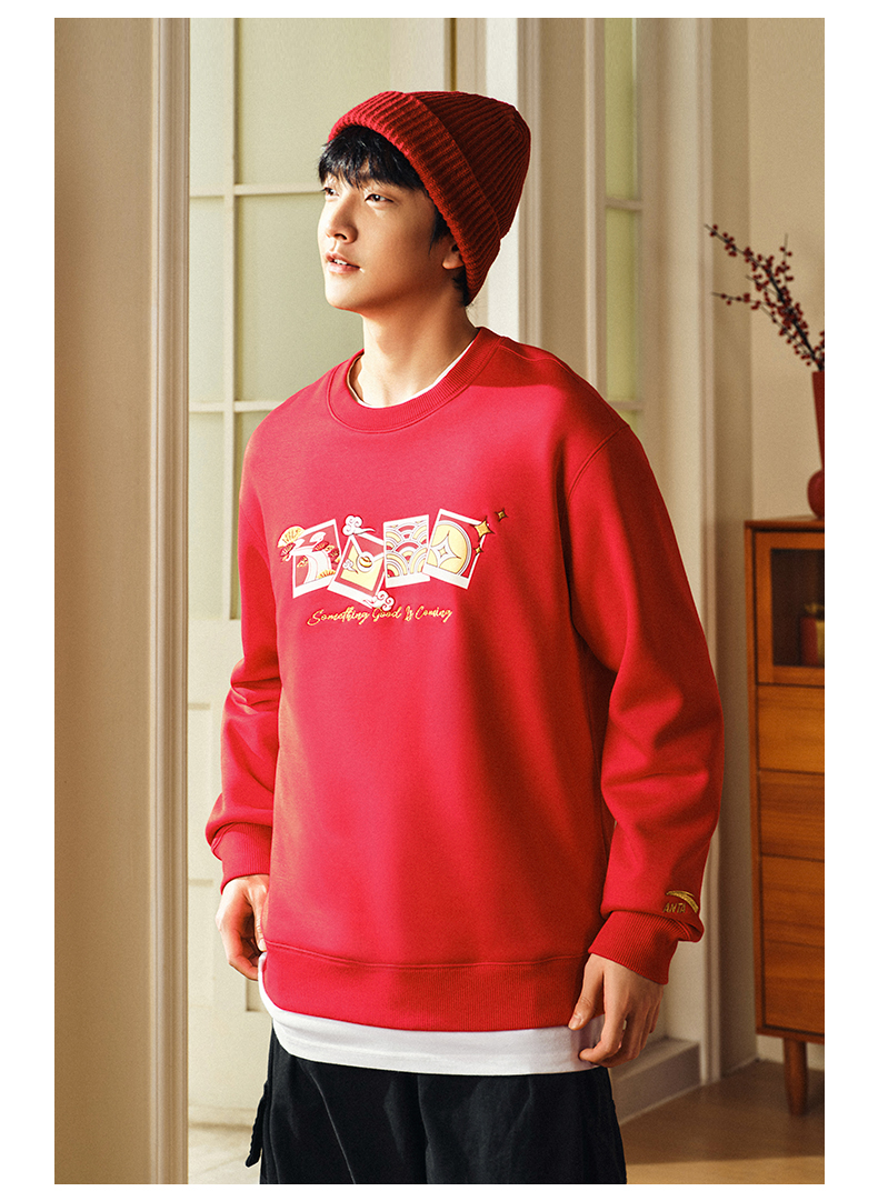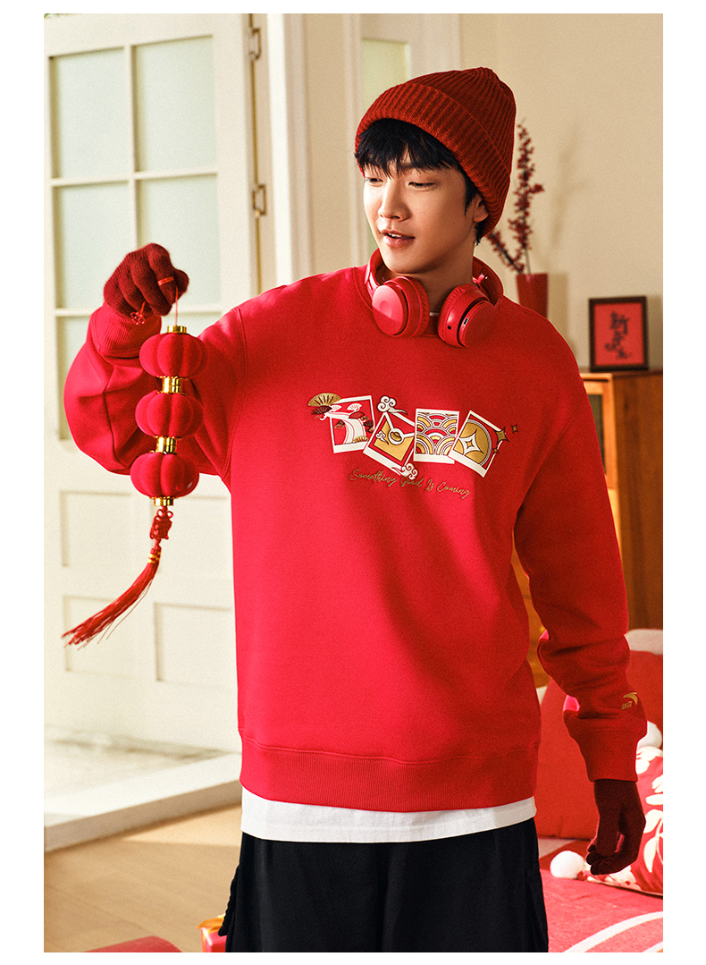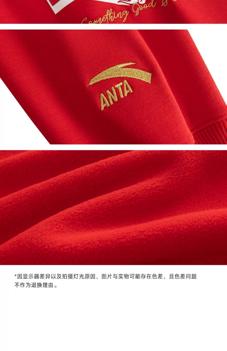 【299任选2件】安踏好事发生丨新年红色套头卫衣男士加绒休闲印花上衣152518703N