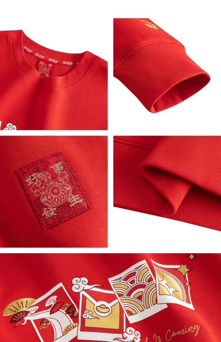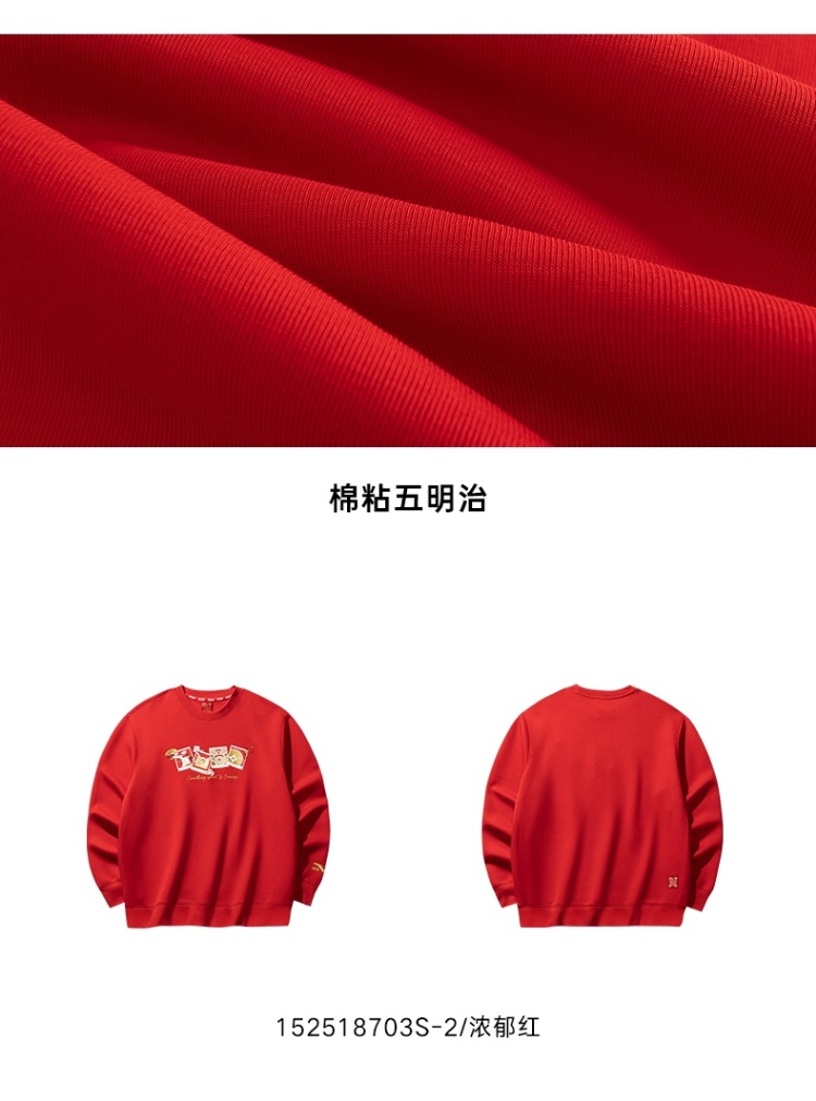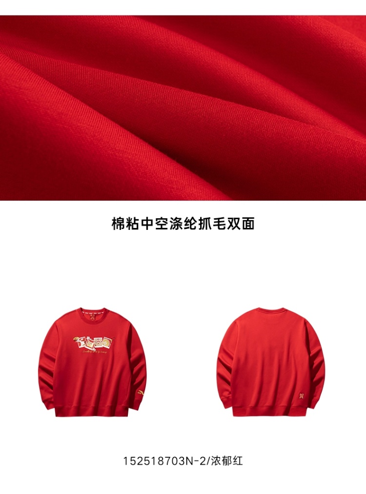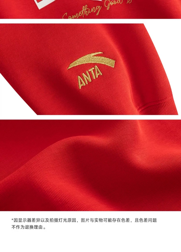 【299任选2件】安踏好事发生丨新年红色套头卫衣男士加绒休闲印花上衣152518703N
