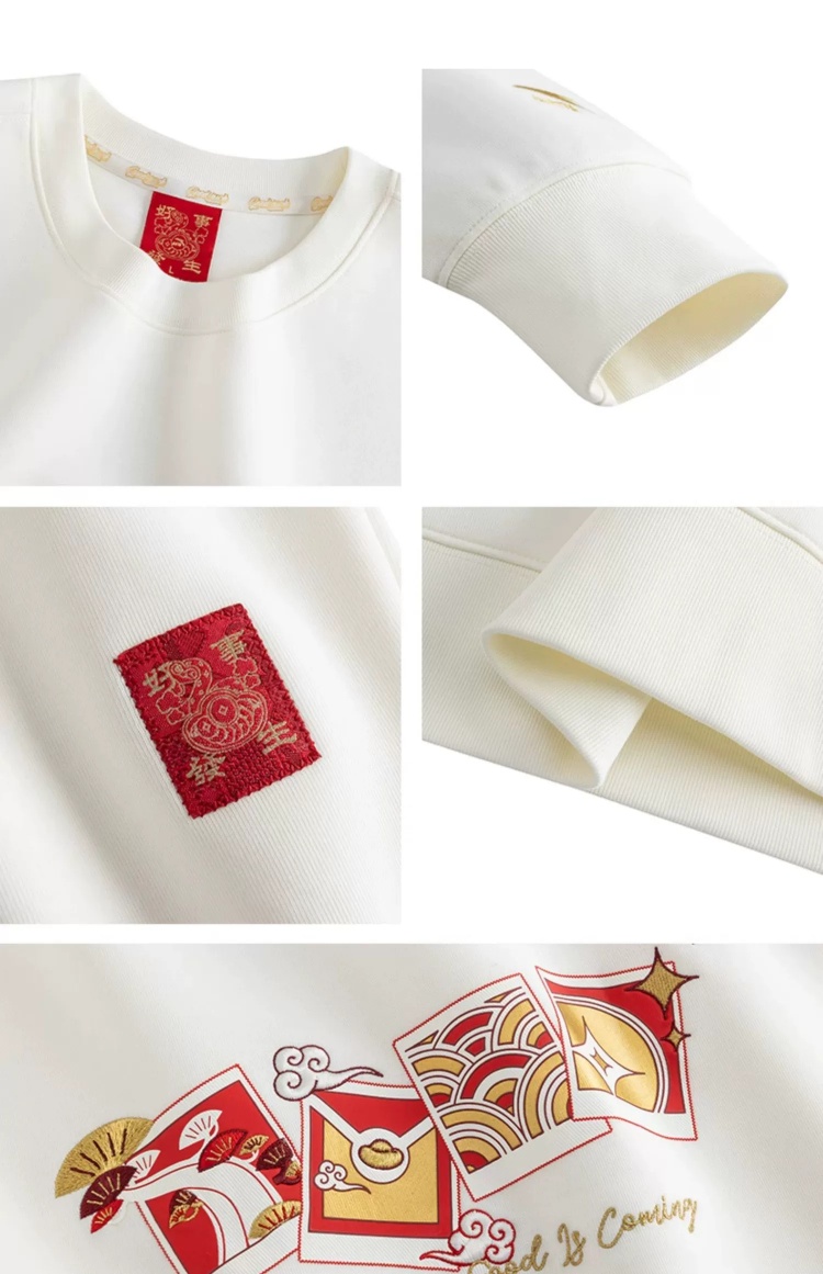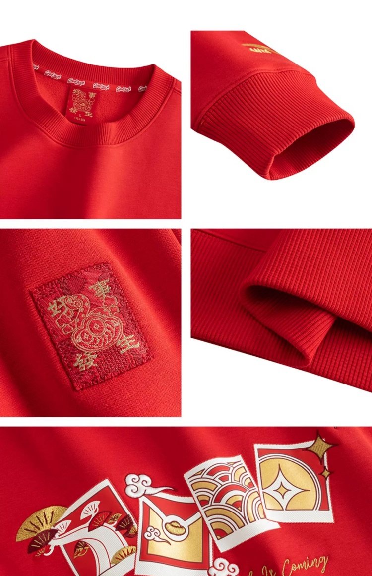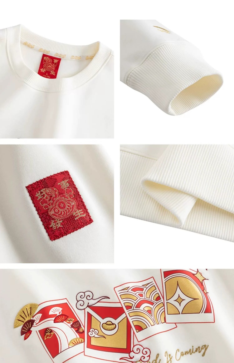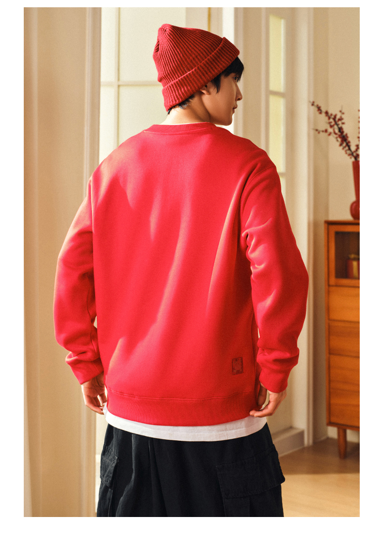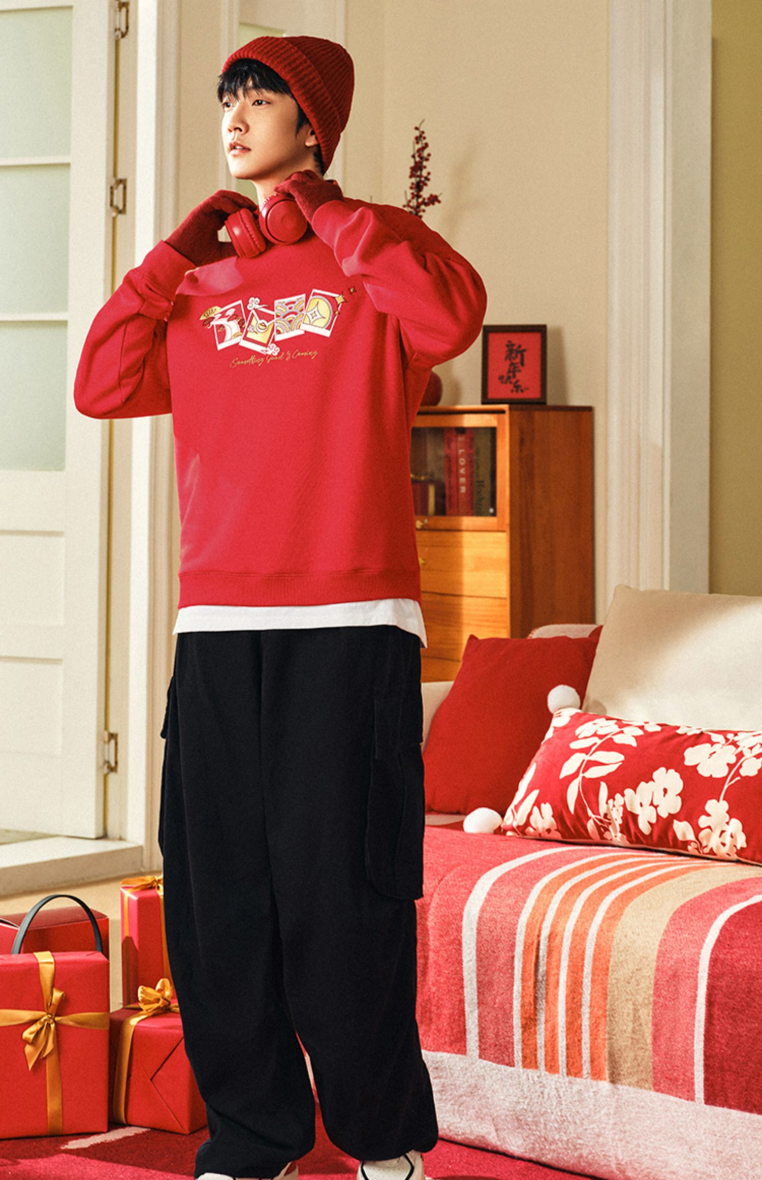 【299任选2件】安踏好事发生丨新年红色套头卫衣男士加绒休闲印花上衣152518703N