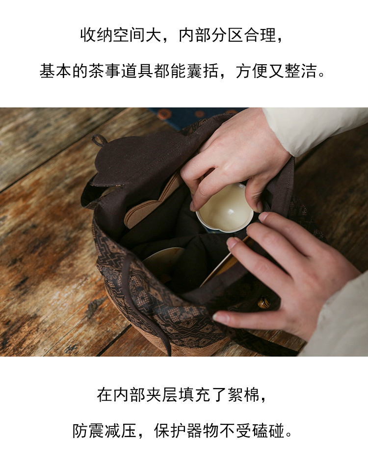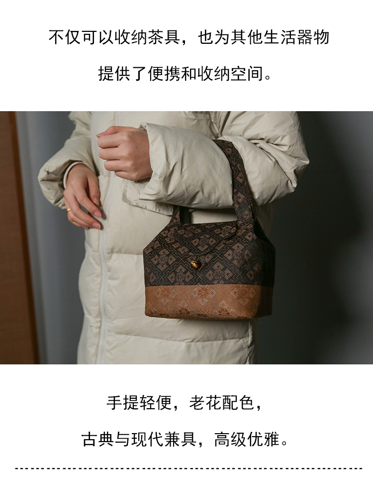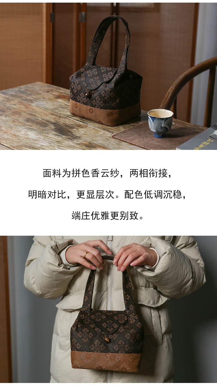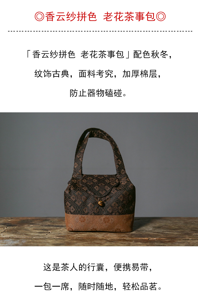 茶香记 香云纱拼色老花茶事包茶道配件茶具收纳便携国风古典