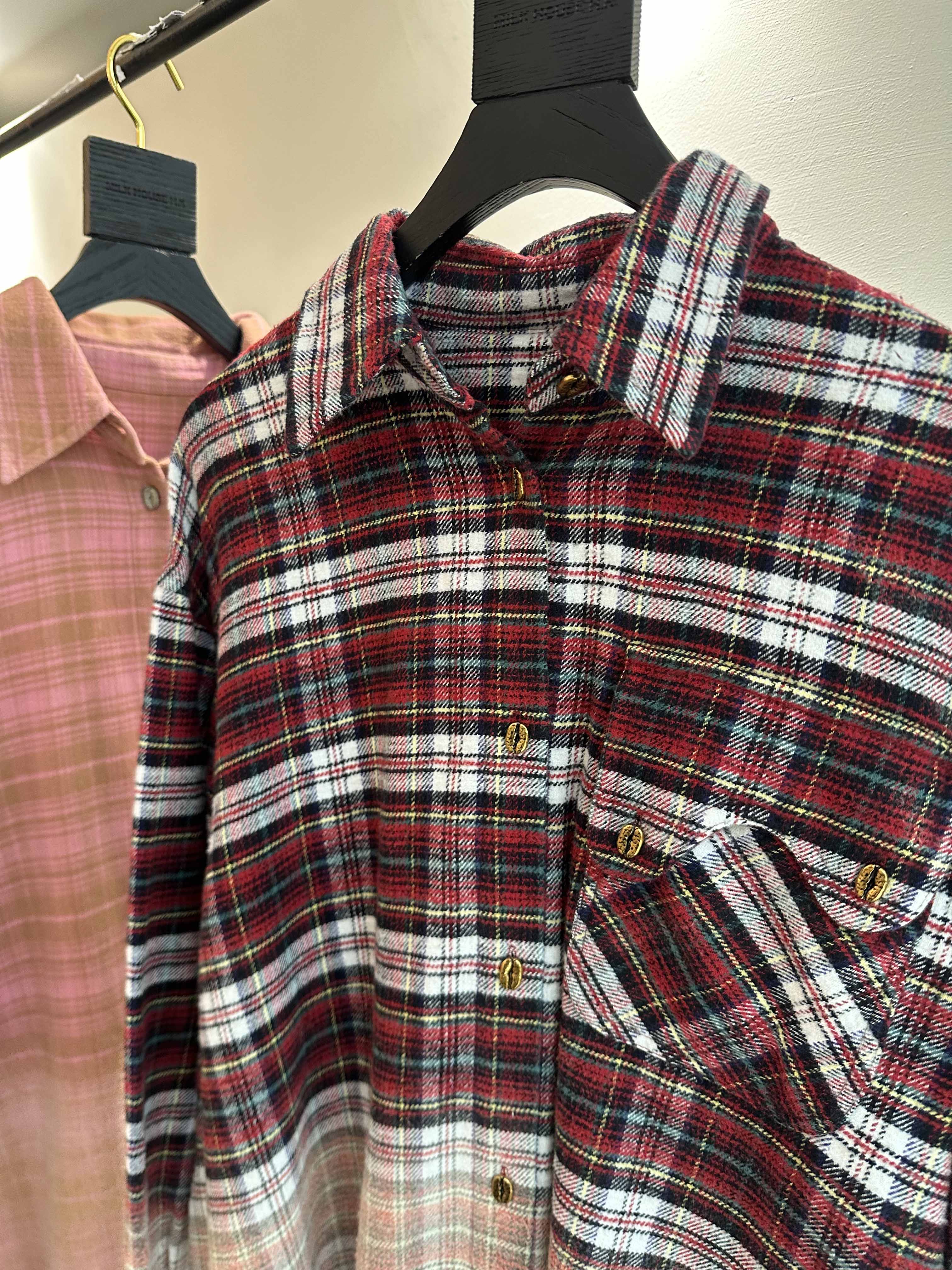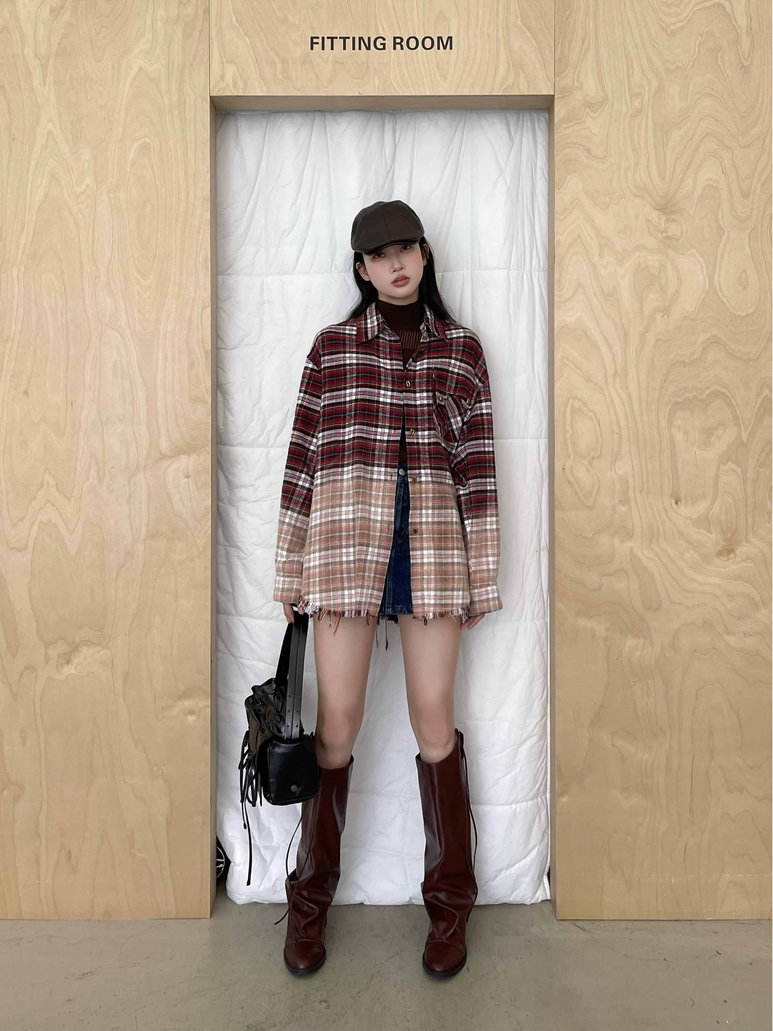面料精选100%棉进口格纹,舒适软糯,成衣漂染工艺,过渡自然,层次丰富