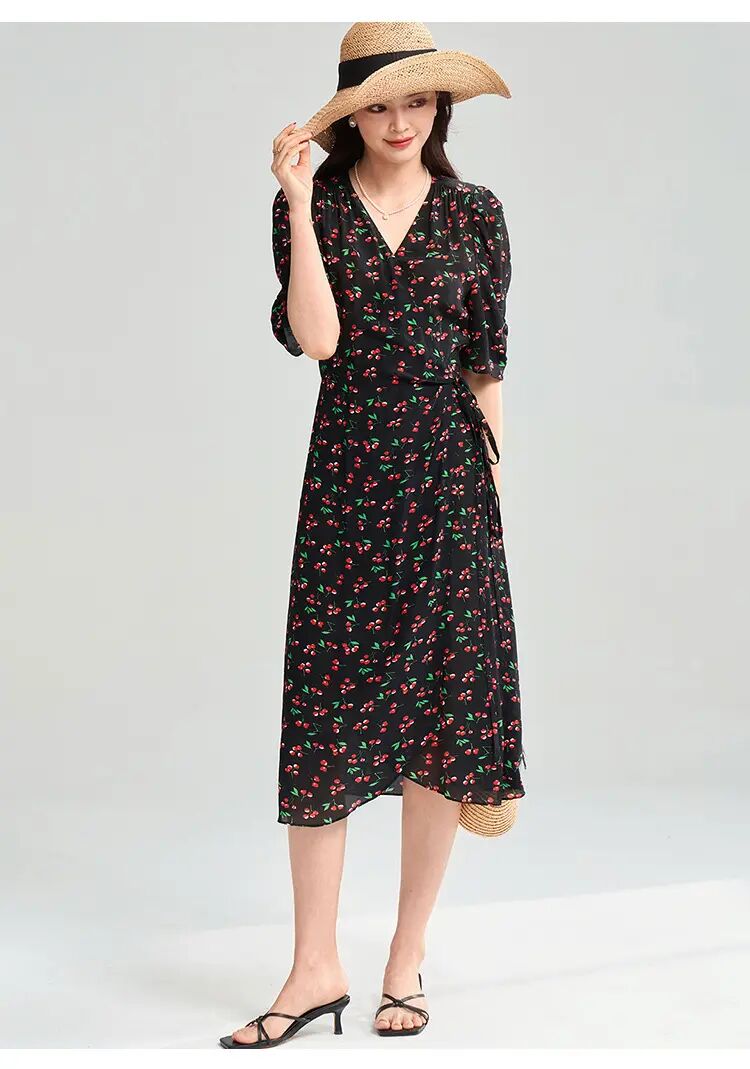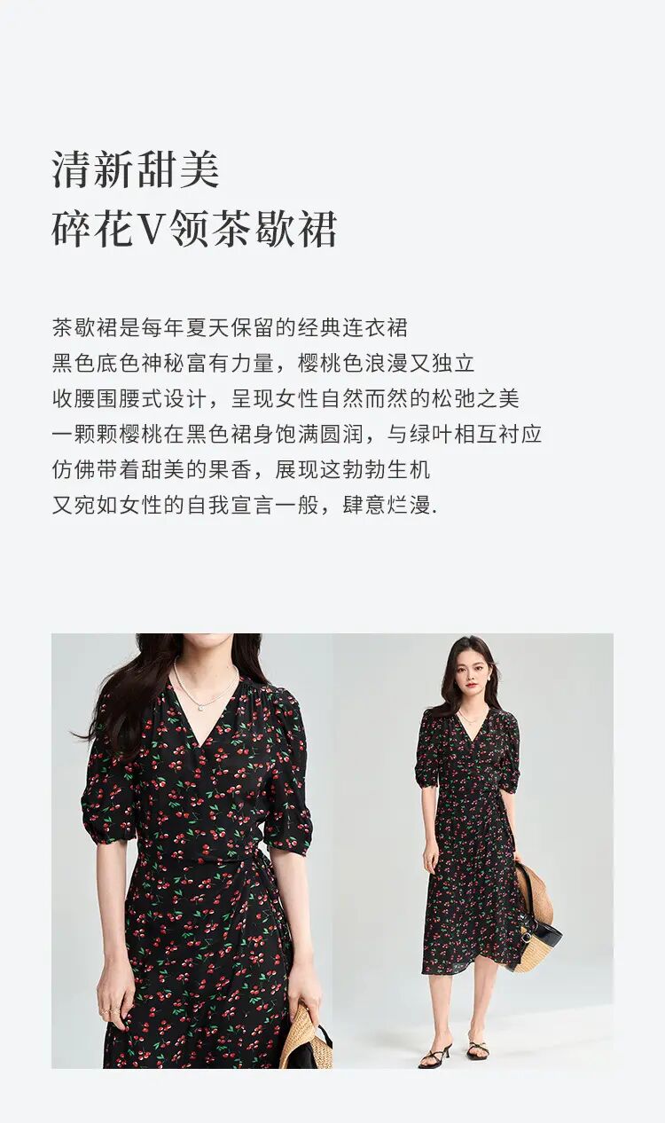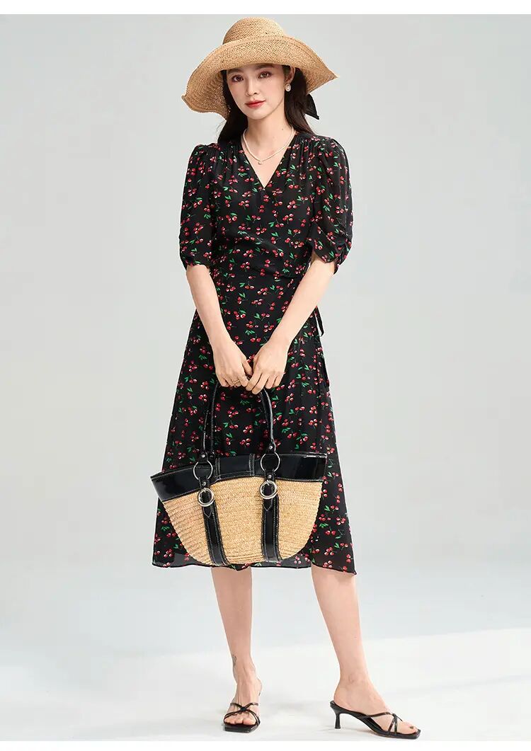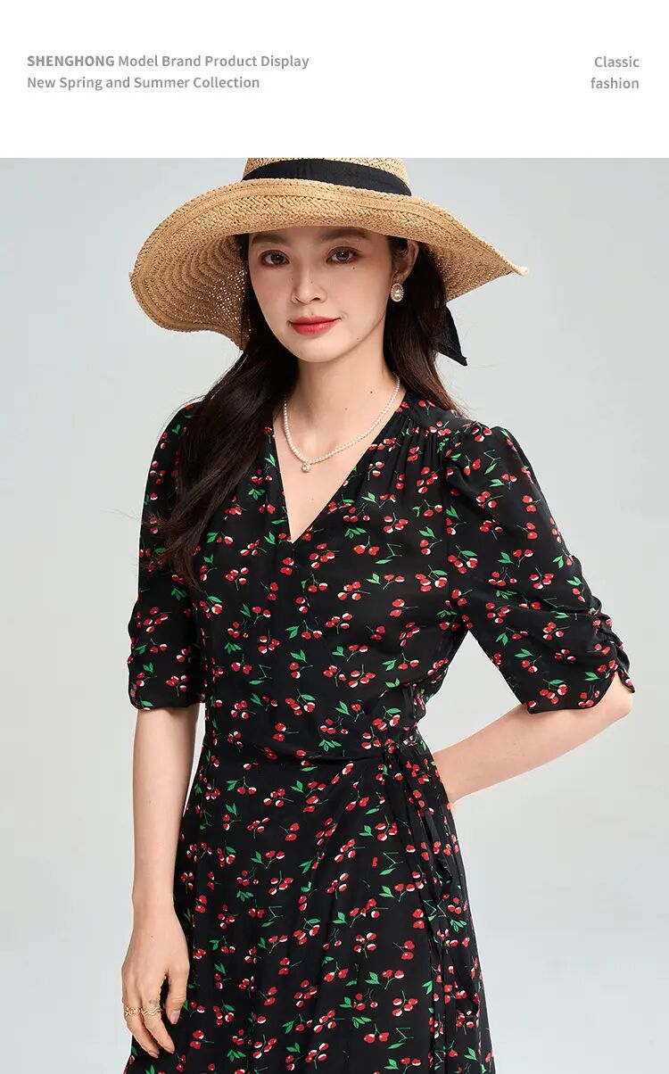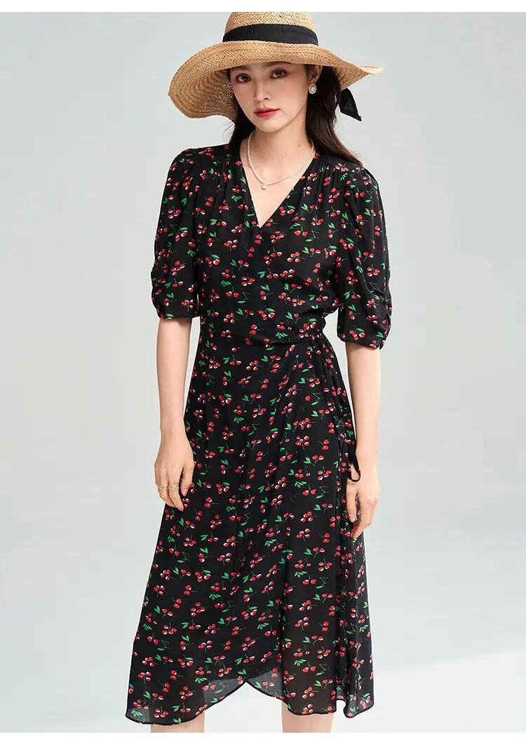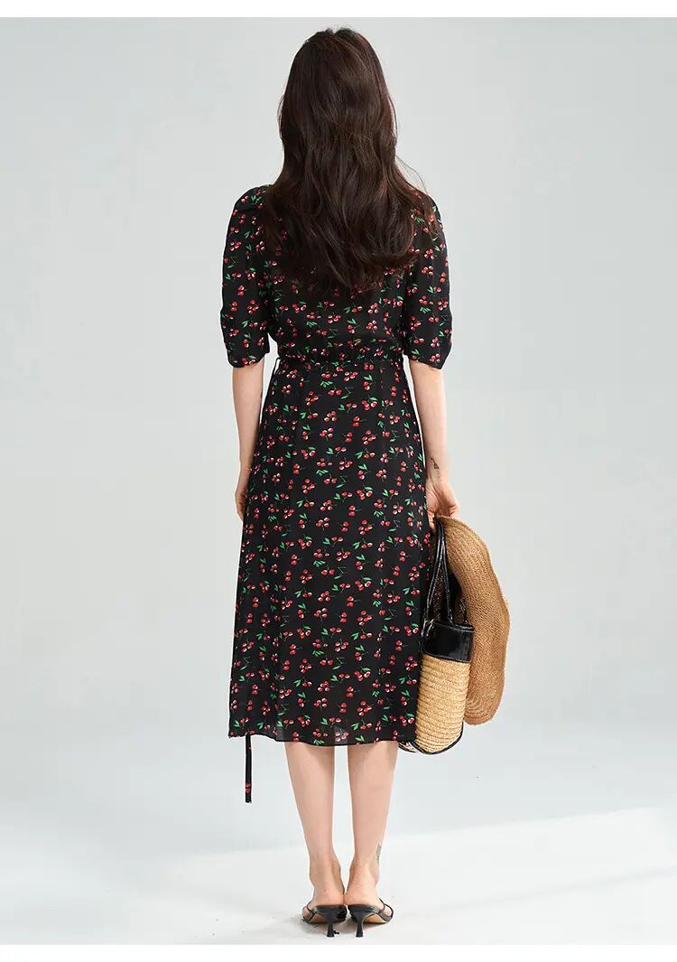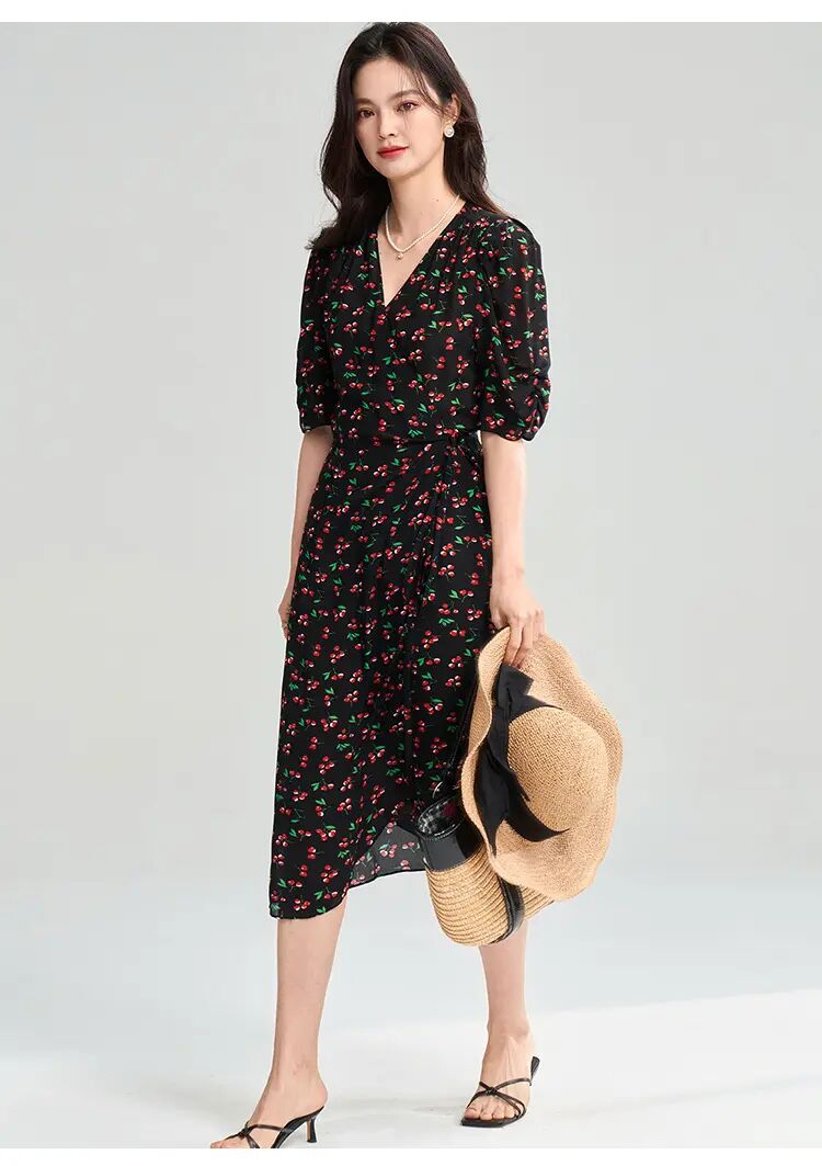 【高货sh】全新升级【铂金会员275/天猫369/差价94】(05140) 洛诗琳25春南法假日樱桃印花连衣裙围裹系带法式茶歇裙