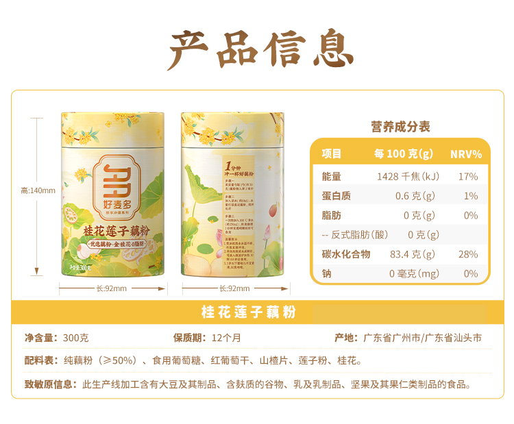 【麦麦SY】【拍一发三】 好麦多坚果水果纯藕粉300g+桂花莲子纯藕粉300g+玫瑰银耳纯藕粉300g+玻璃杯勺套装