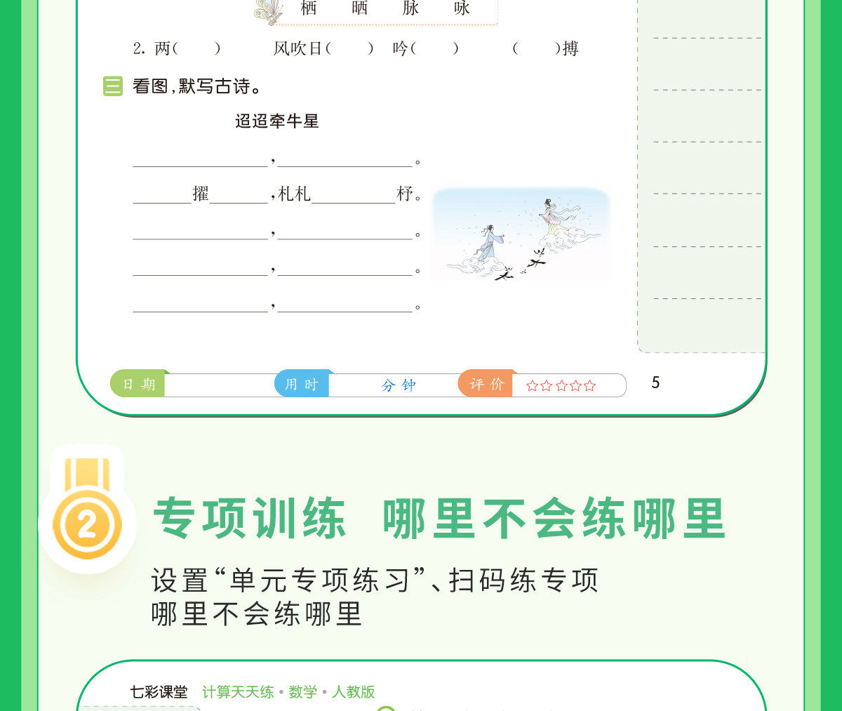 2026春七彩课堂语文英语默写天天练、数学计算天天练123456年级下册人教版小学同步练习册生字默写词汇运用口算笔算