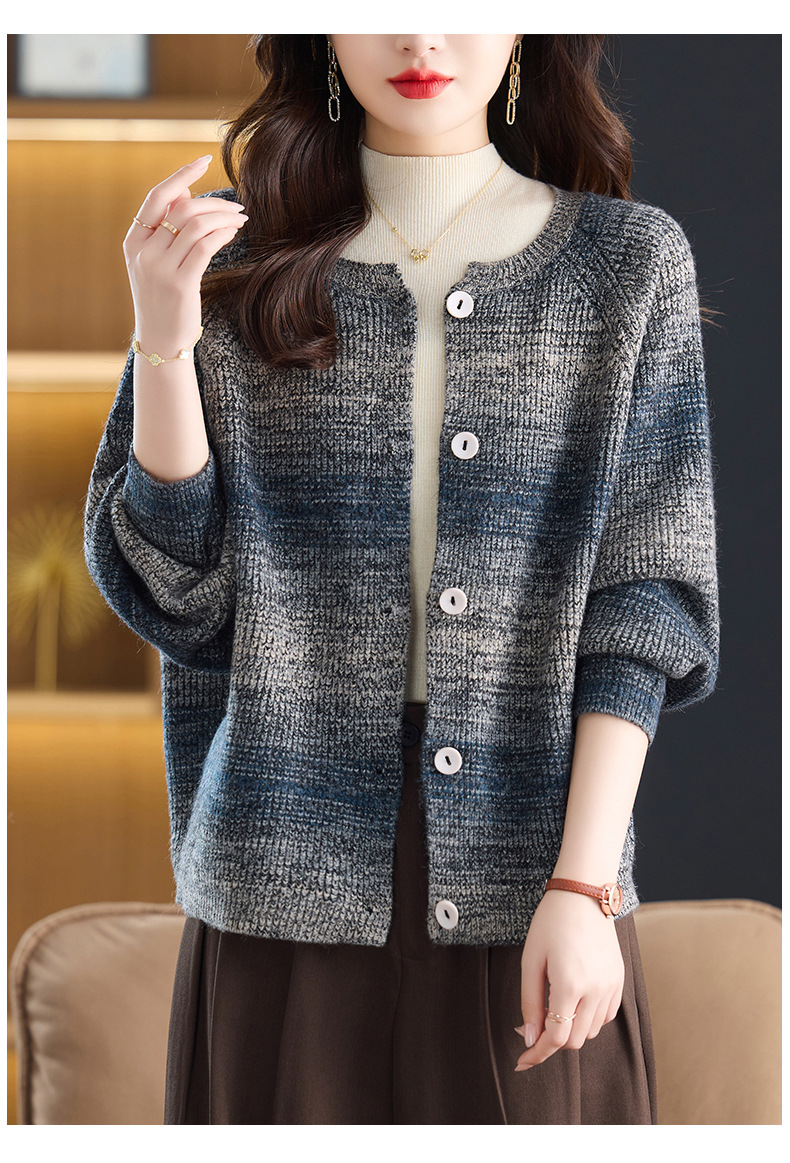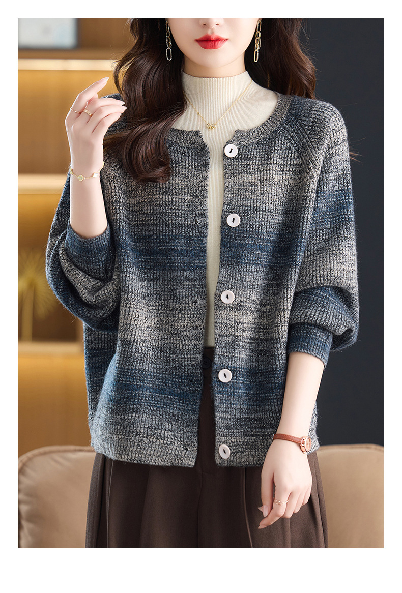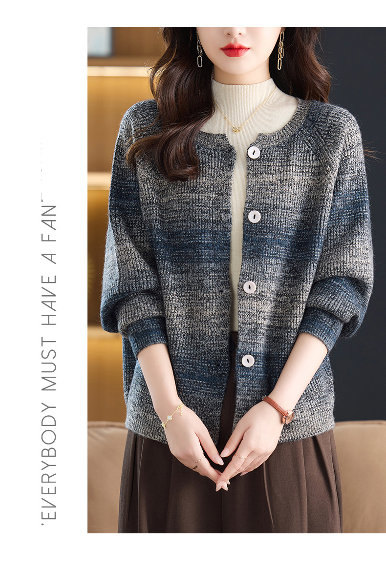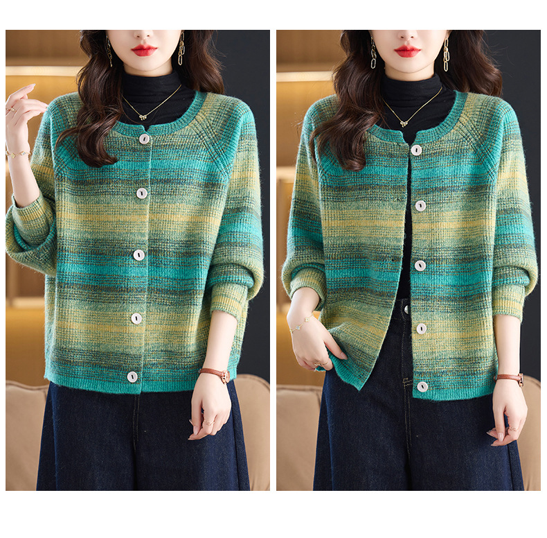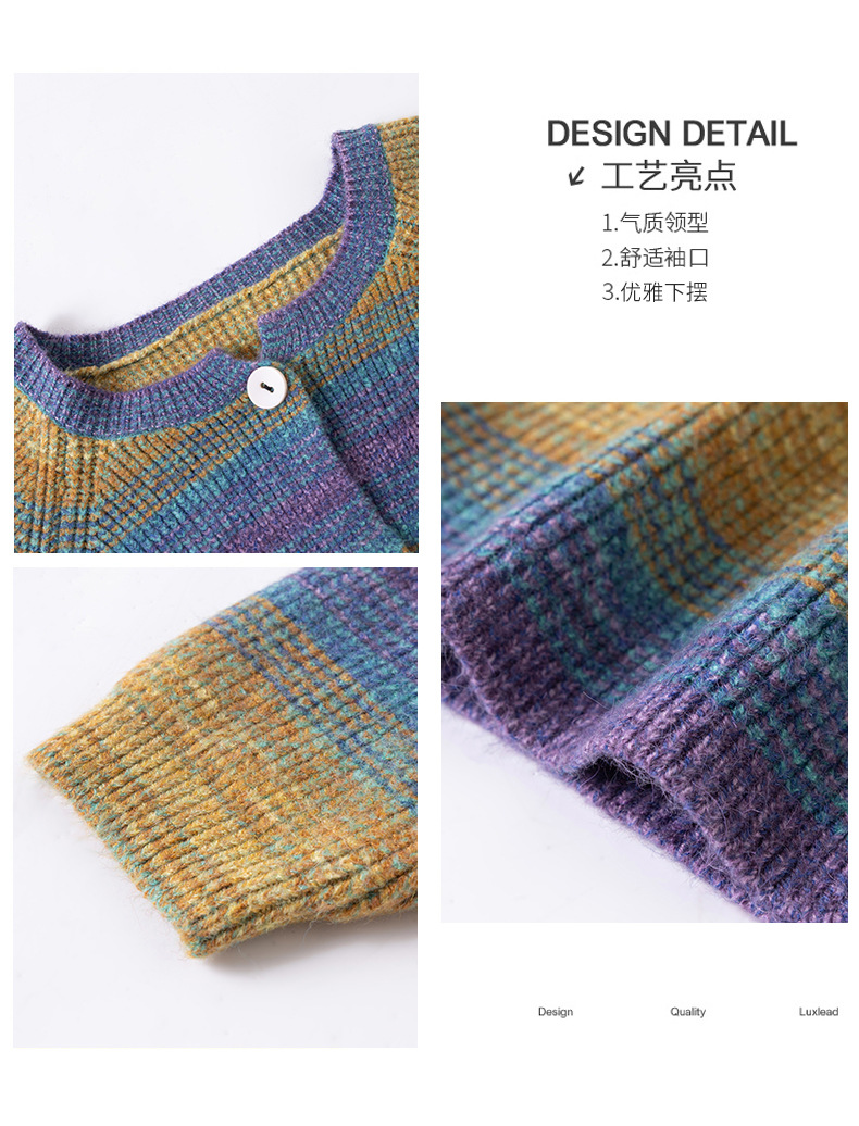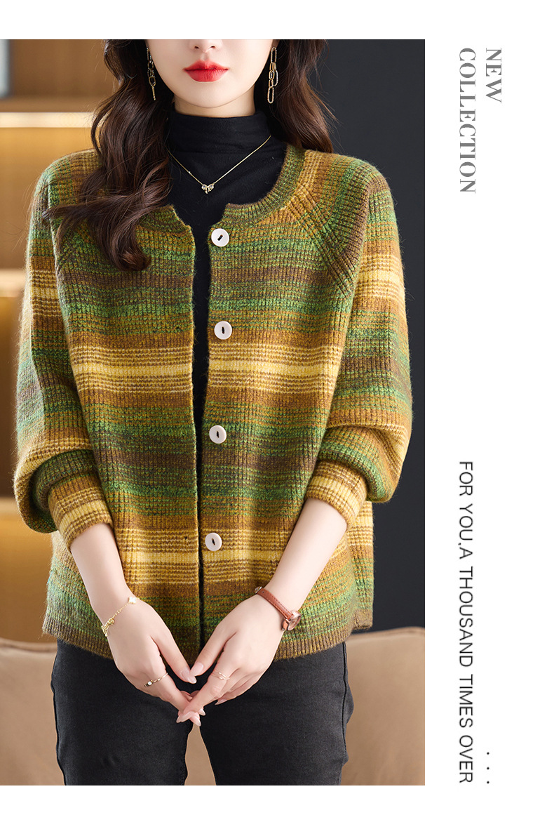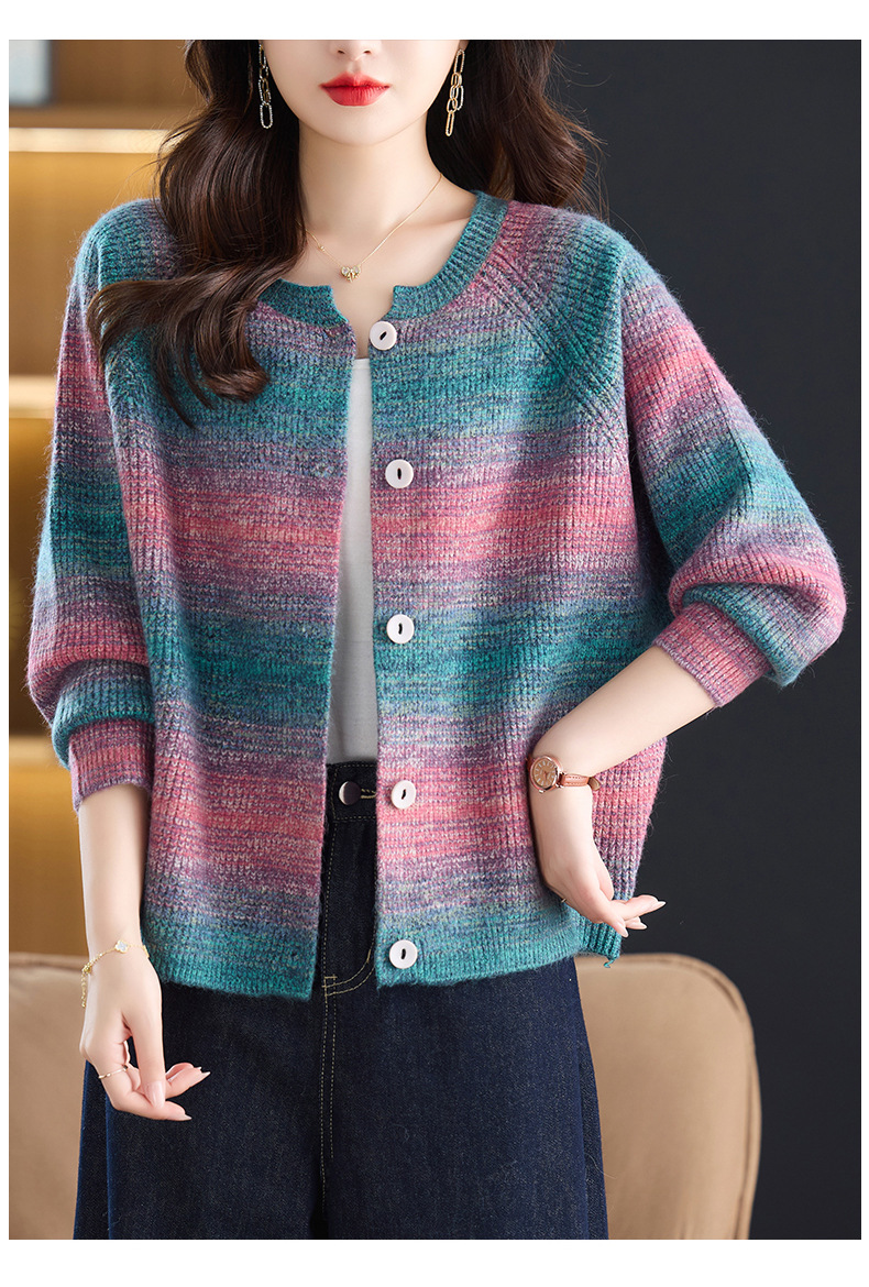 CC设计感撞色彩虹条纹圆领针织开衫2025年秋季韩版减龄蝙蝠毛衣外套
