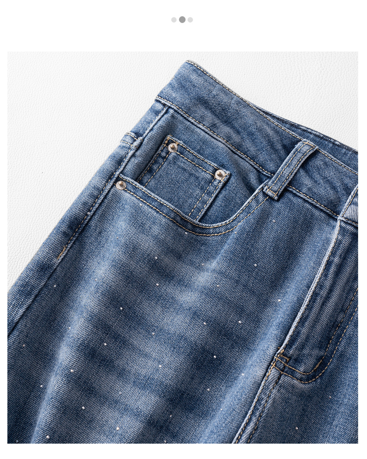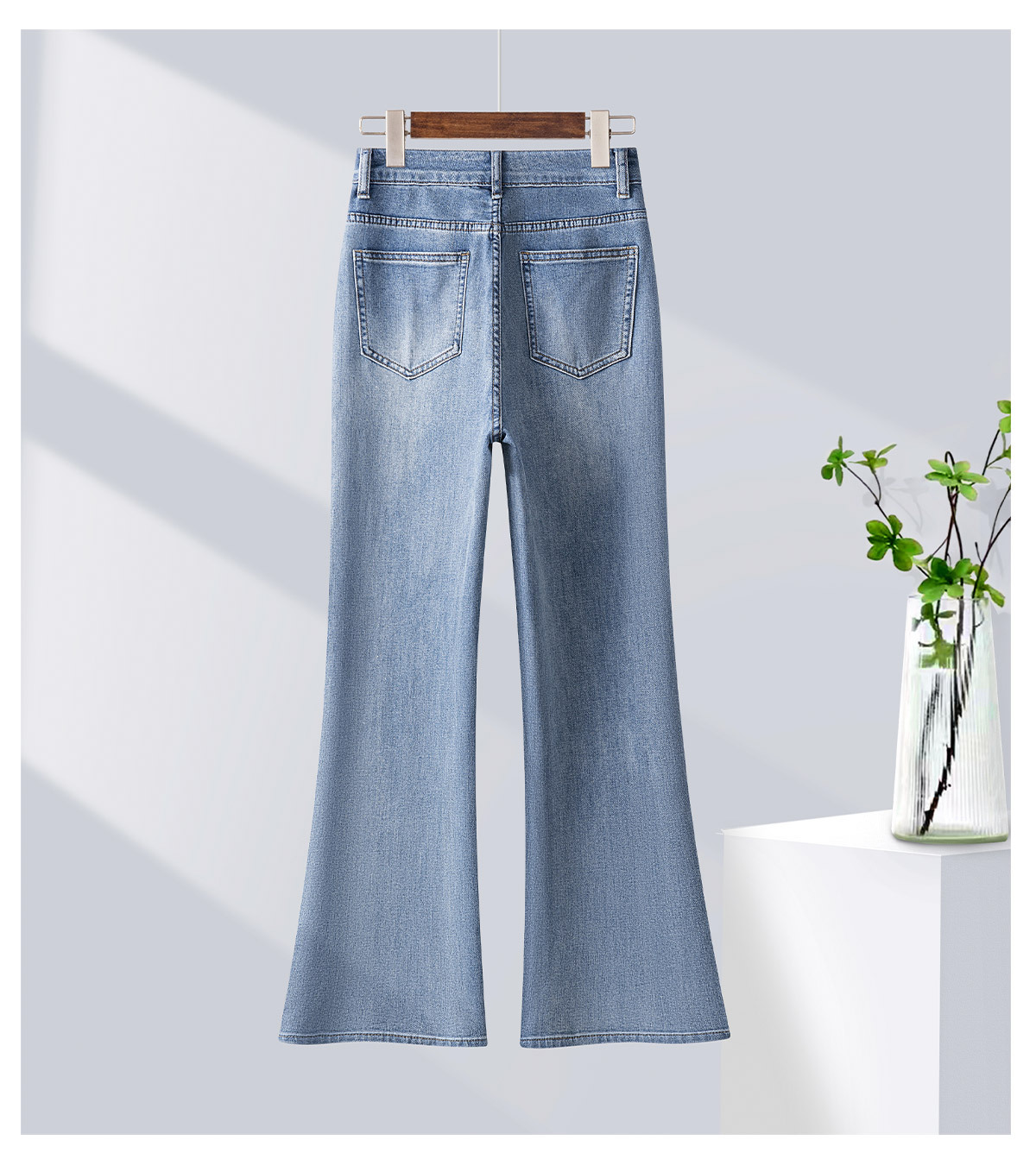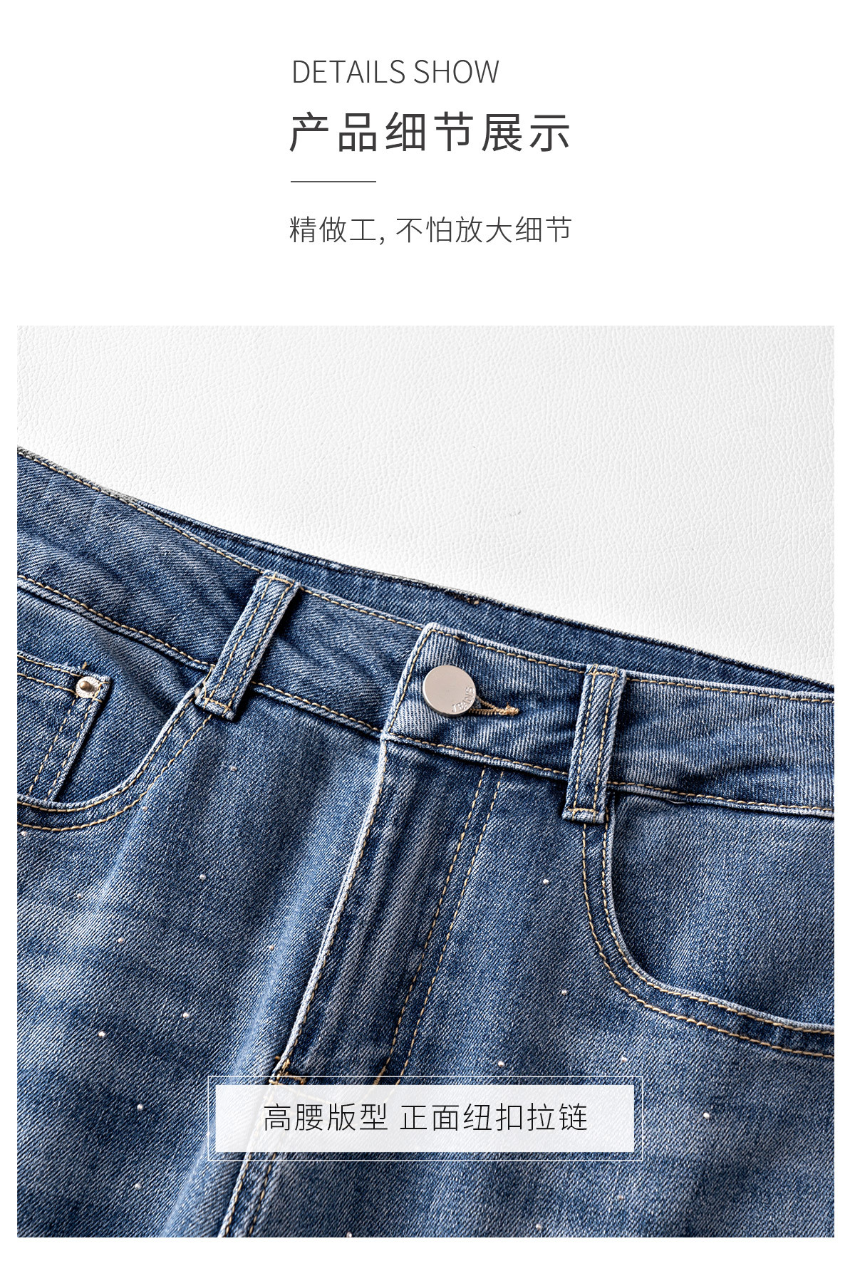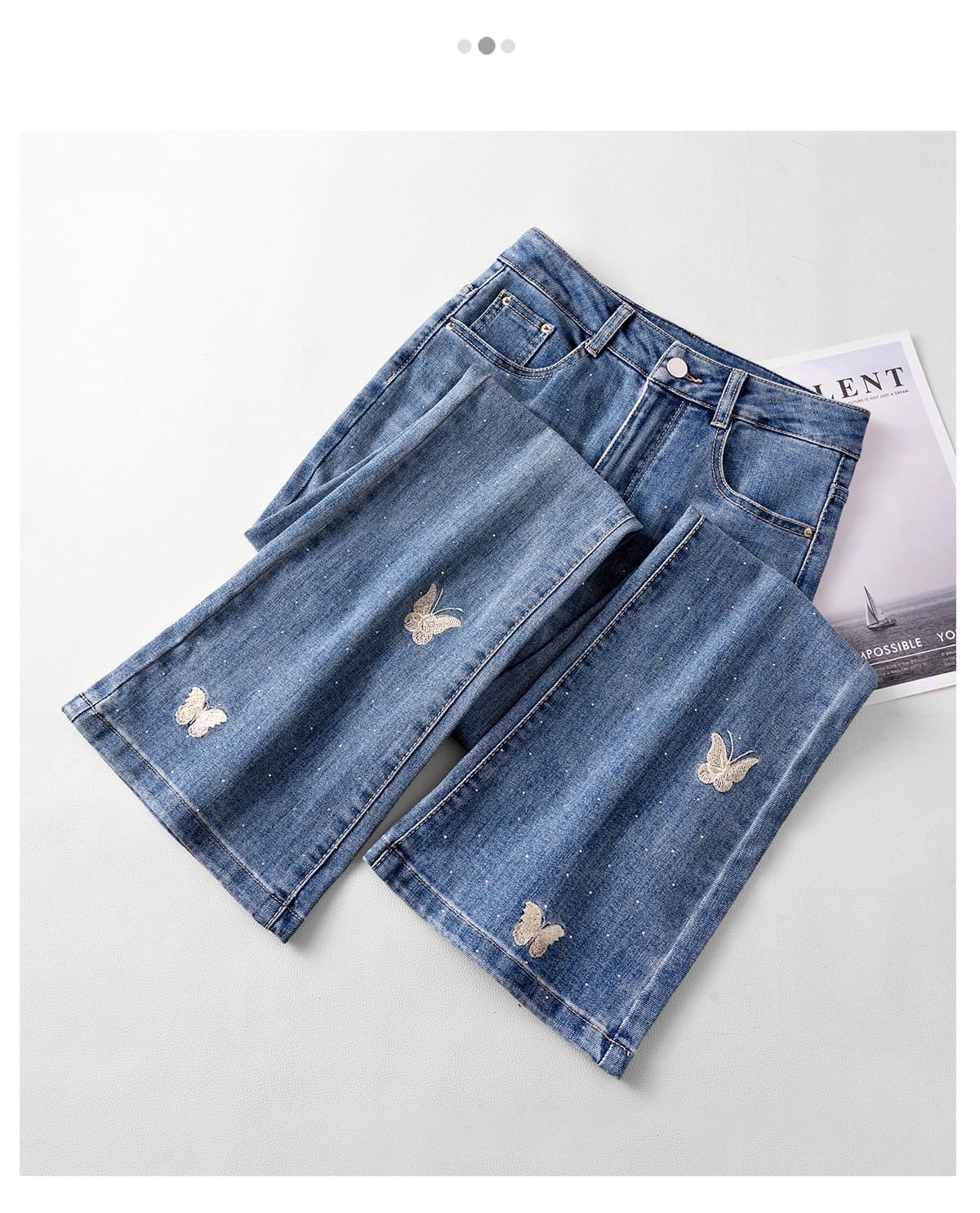 「自」全新升级【铂金会员165/天猫219/差价54】(95551)洛诗琳蝴蝶刺绣烫钻牛仔裤2025夏季高腰弹力修身微喇裤女