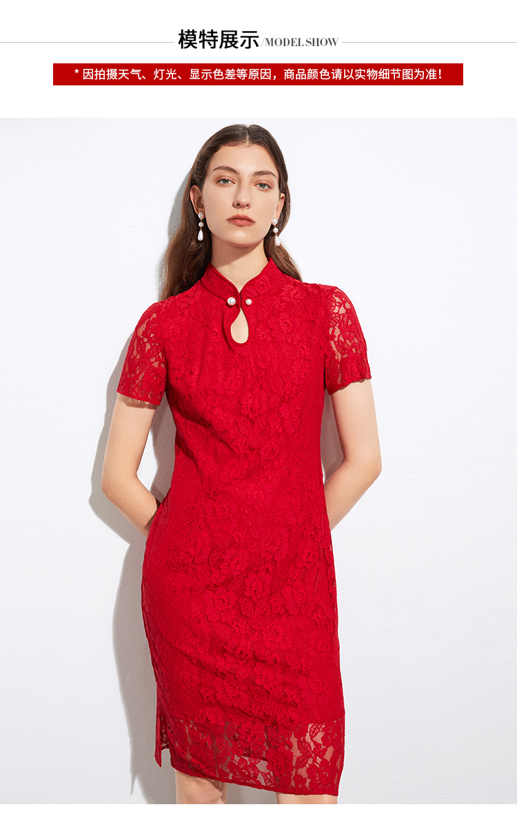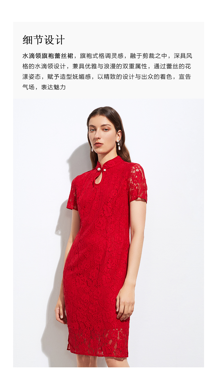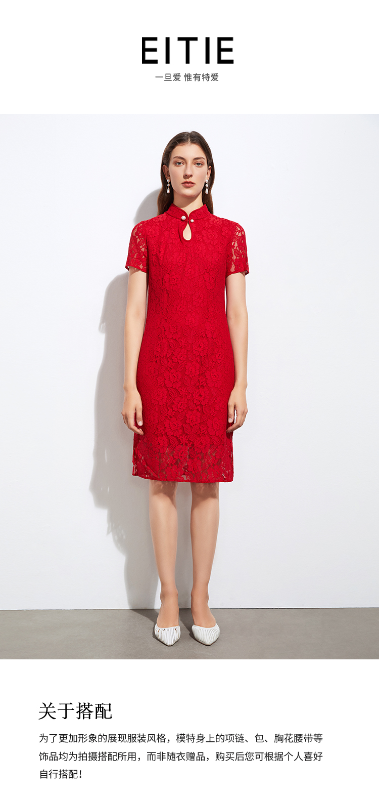 EITIE爱特爱夏季新款优雅蕾丝显瘦水滴领中式改良旗袍连衣裙B2107732