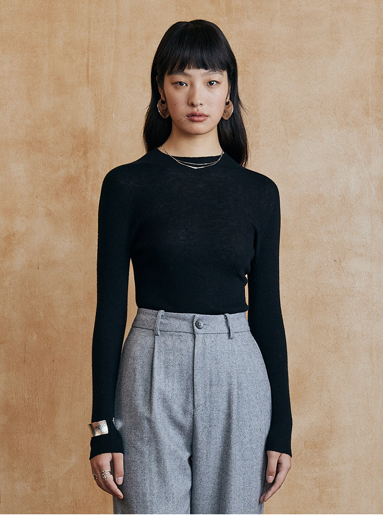 IN AND ON可机洗绵羊毛 无缝一体半高领针织打底衫53628