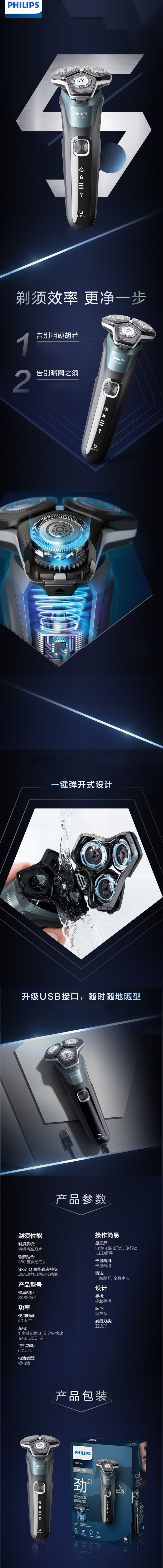 PHILIPS飞利浦黑蜂巢5系电动剃须刀(S5832)