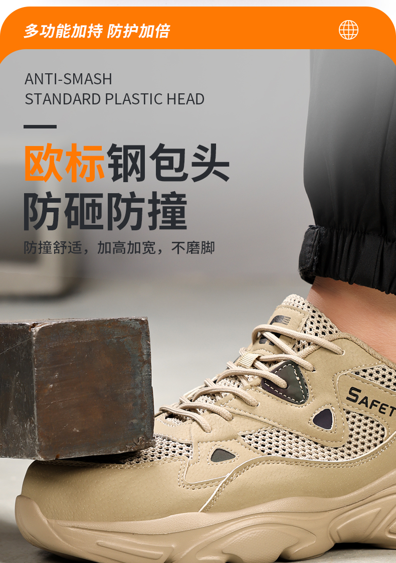夏季透气新品防砸防刺安全鞋钢包头劳保鞋工作鞋橡塑底轻便款