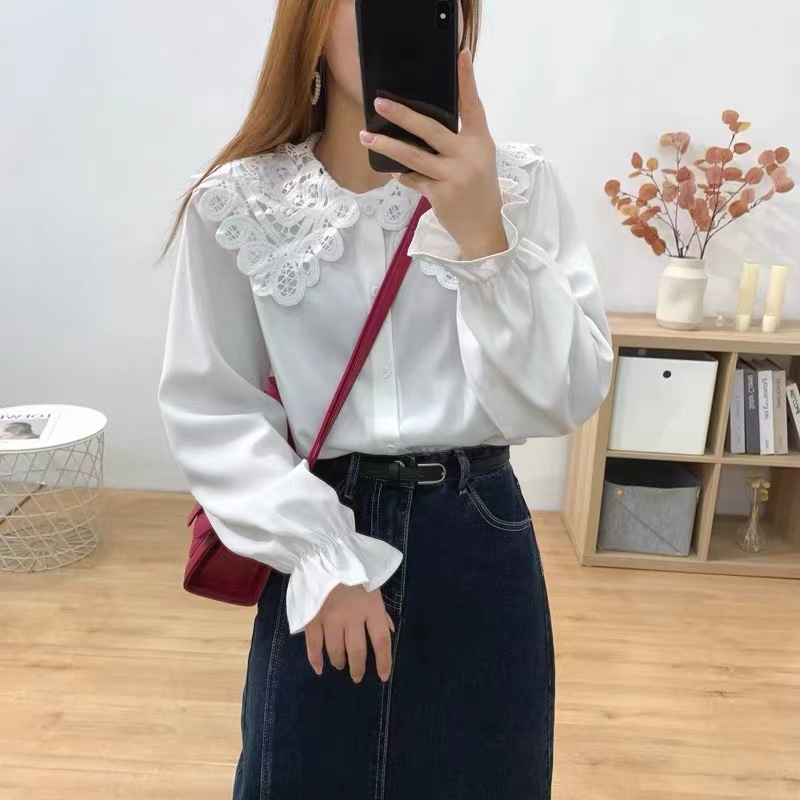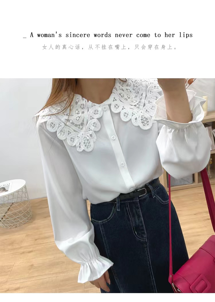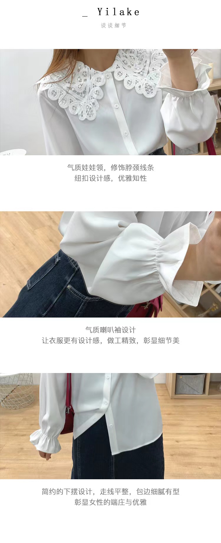 限七夕活动-样衣微脏~娃娃领拼雪纺小衫上衣-喜出