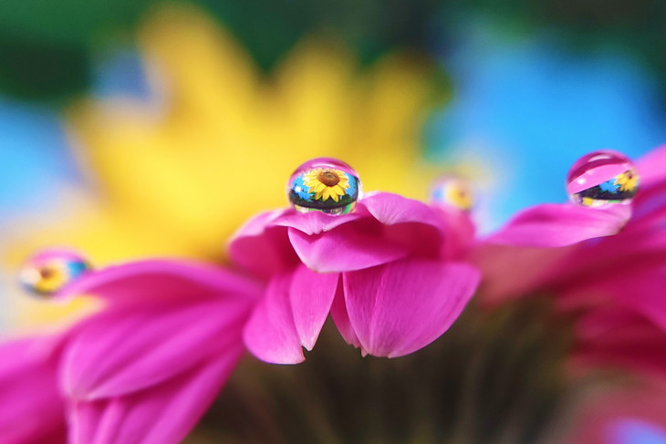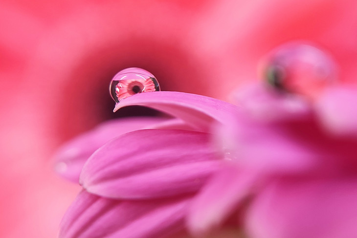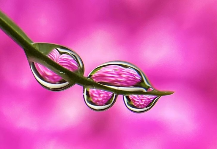 微距水滴花卉摄影结合了水珠和花,两者结合在一起,形成了很唯美又新奇的画面。