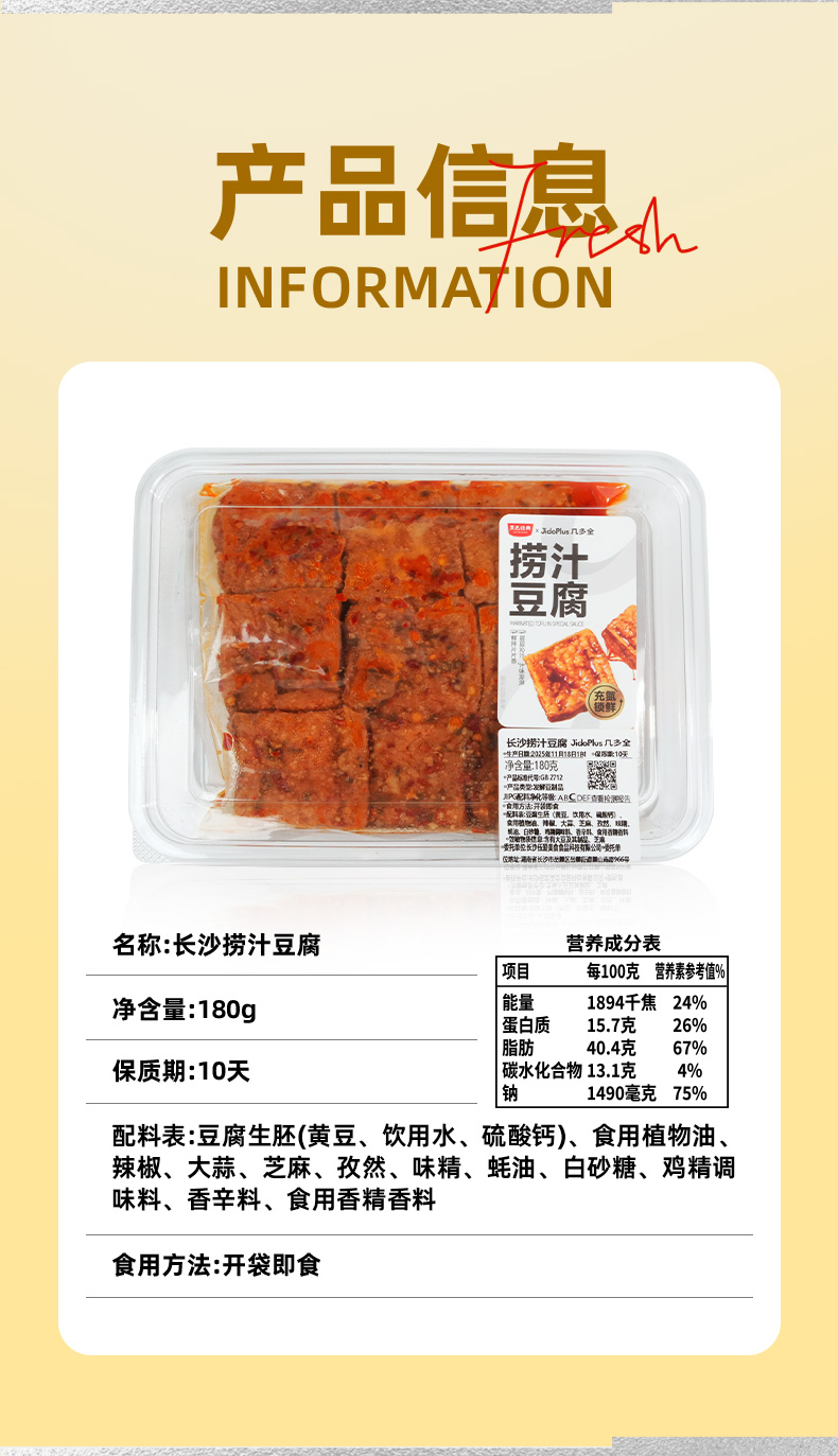 【鲜食新品】黑色经典X几多全长沙捞汁豆腐香辣味 180g