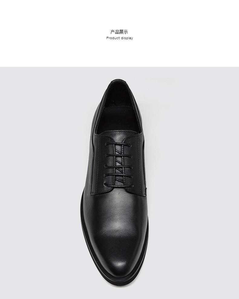 HIM漢崇 商务正装结婚鞋尖头系带真皮男士皮鞋舒适英伦黑色德比鞋