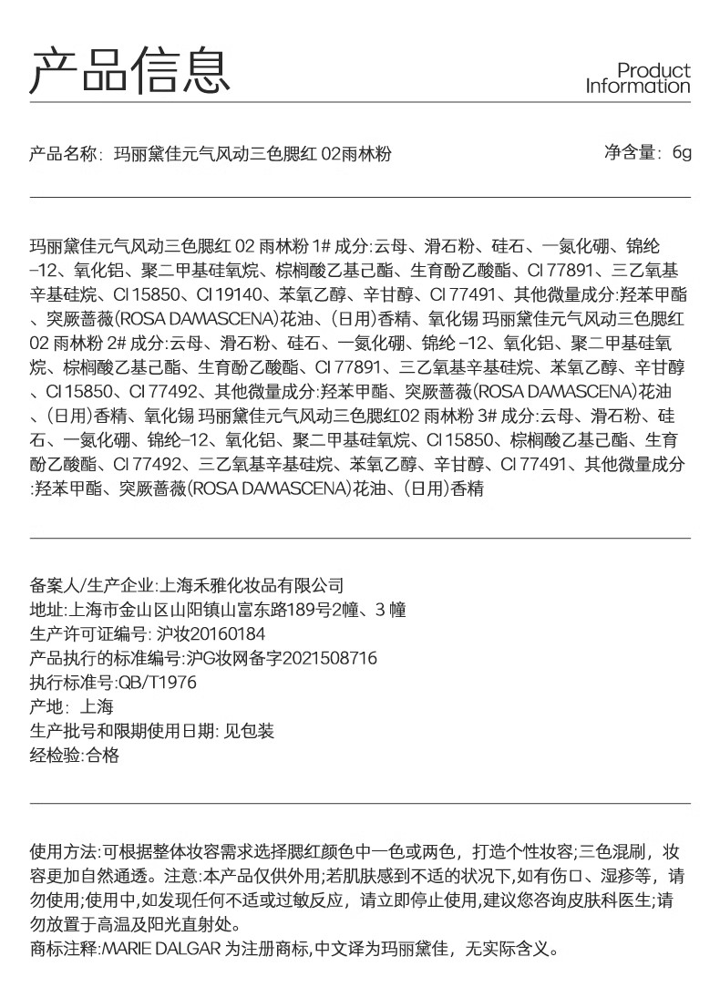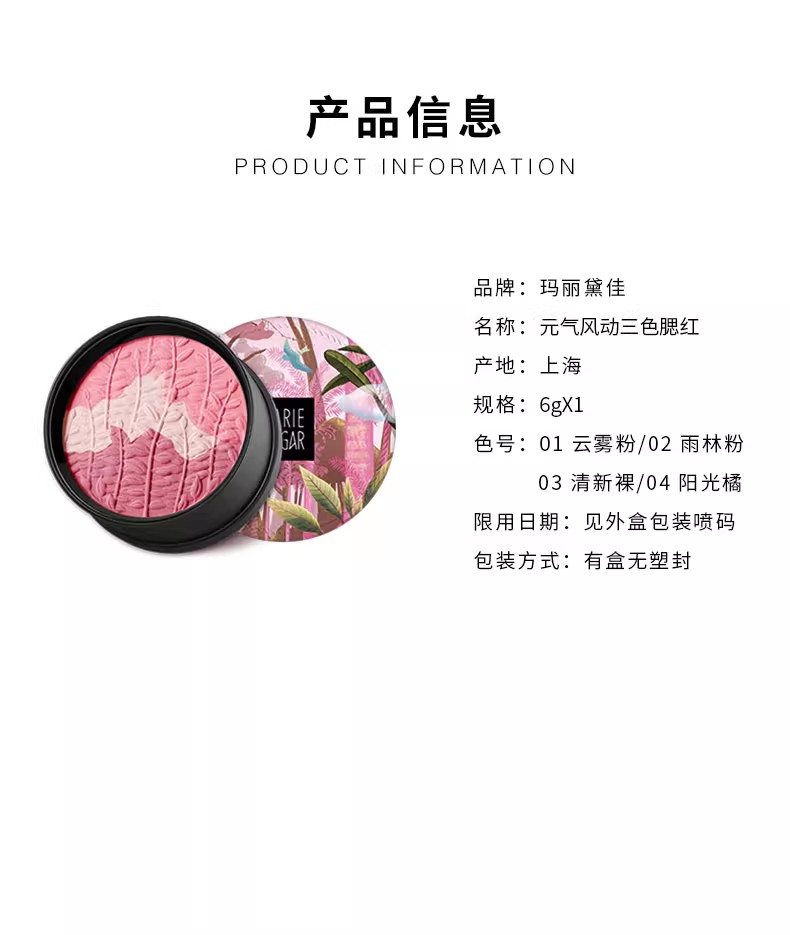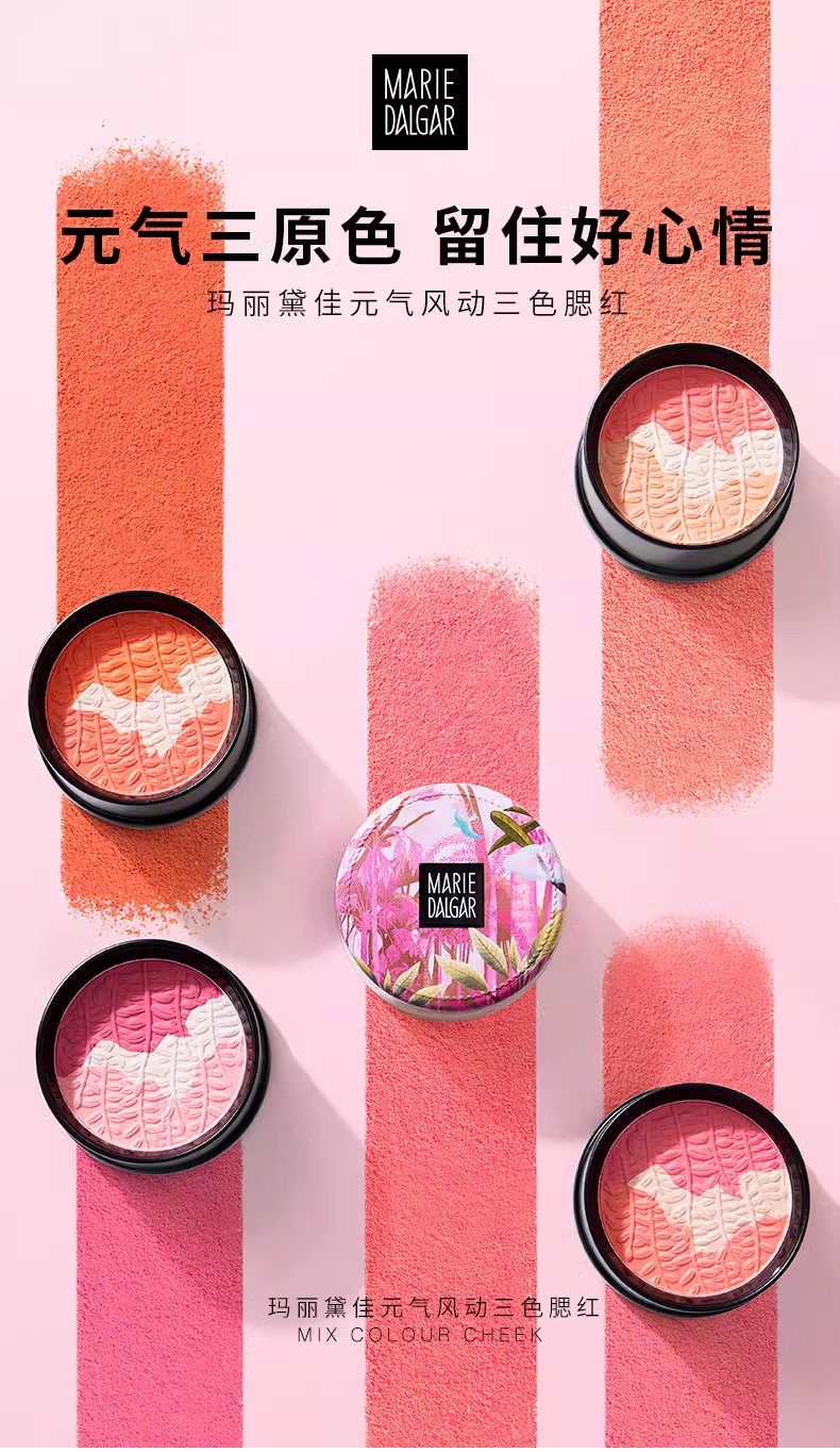 【积分兑换正装】玛丽黛佳三色腮红少女粉胭脂粉扑蜜粉自然裸妆修容三色盘正品