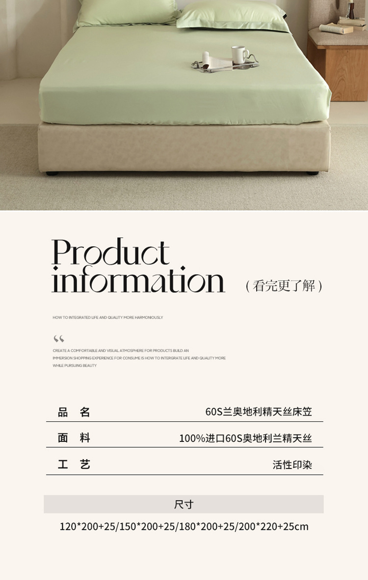 【60S莱赛尔天丝床笠】单品天丝床笠纯色60S莱赛尔兰精天丝床笠
