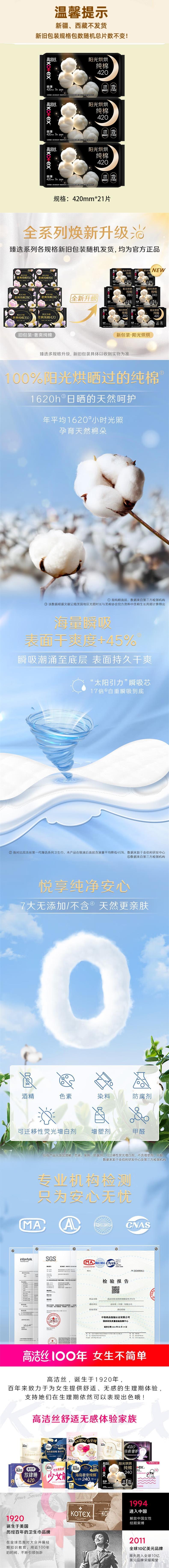 高洁丝 全新阳光烘烘纯棉夜用卫生巾420mm7片*3包 JGSOHY7P3B