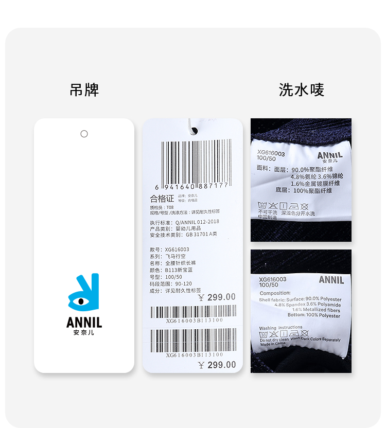 【实体店同款】女童全腰针织长裤春季新款安奈儿童装XG616003