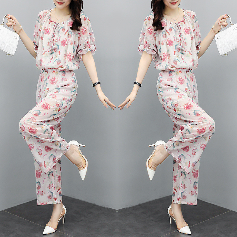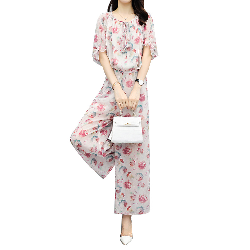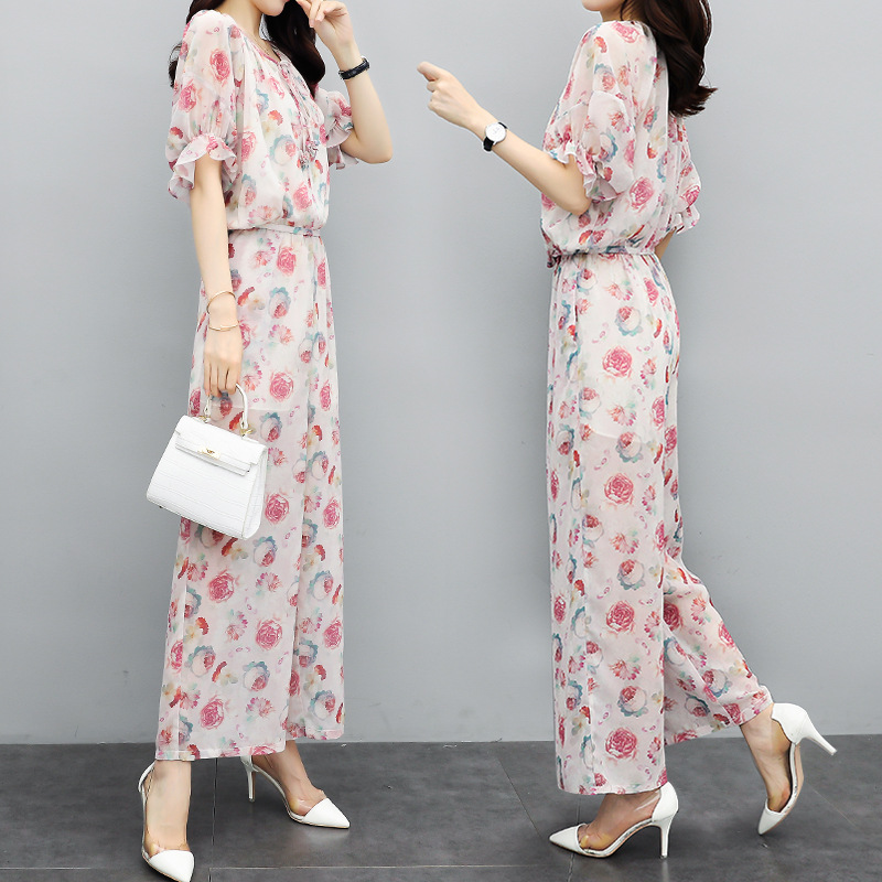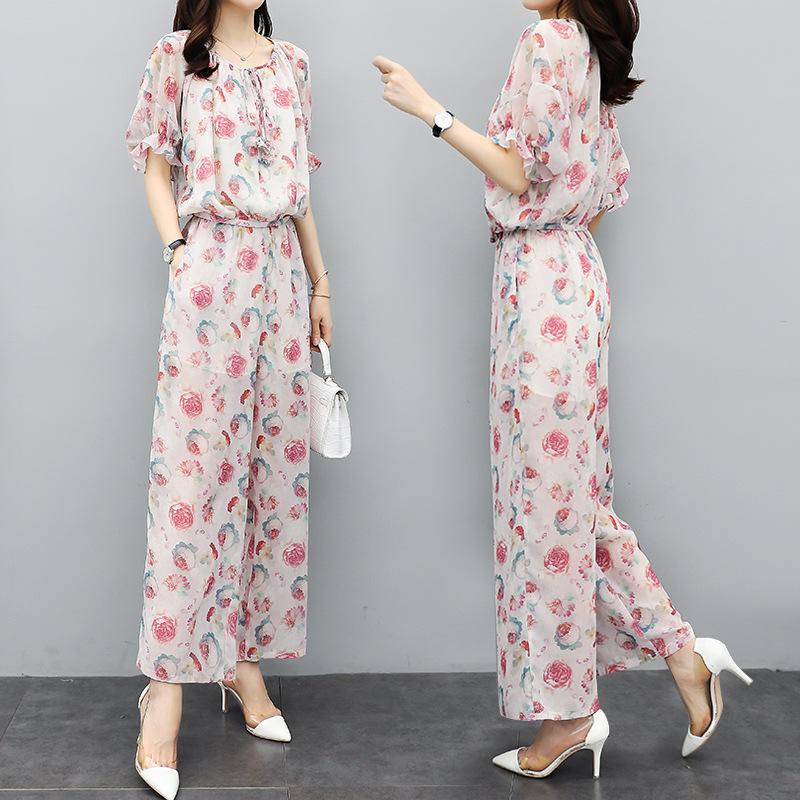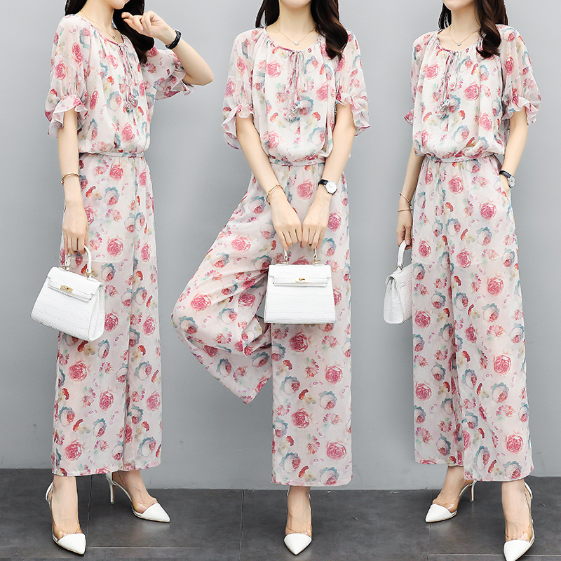 DLL-6565新款气质轻熟风显瘦上衣阔腿裤雪纺洋气两件套