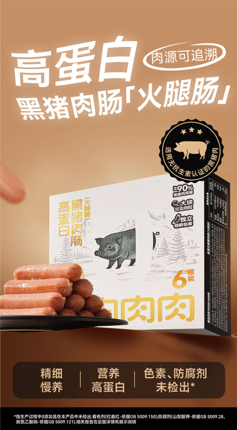 自由肉肉 黑猪肉肠 240g/盒(40g*6根) 精选后腿肉 香不腻瘦不柴 肉粒真材肉丝实料 高蛋白好吃有营养