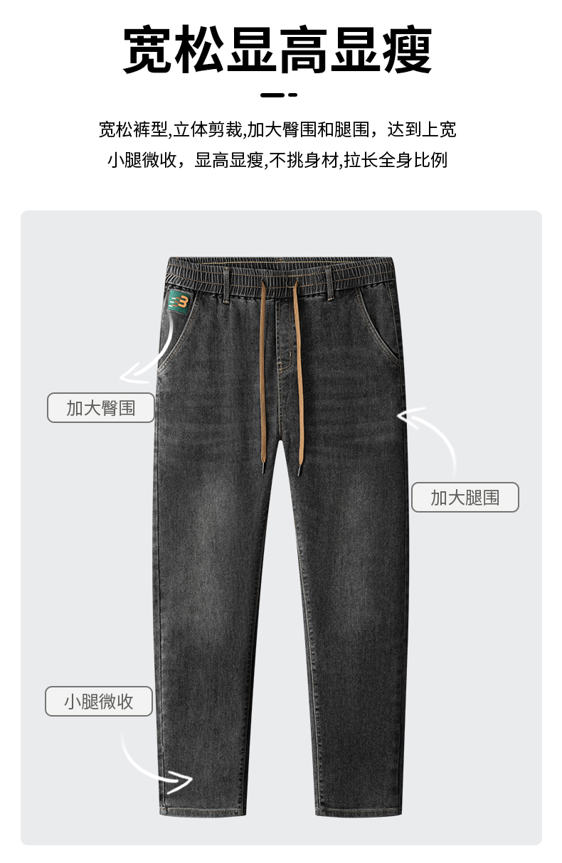 【新款DKP】大依优型大码松紧腰牛仔裤直筒长裤男舒适弹力休闲商务简约百搭加肥加大男装