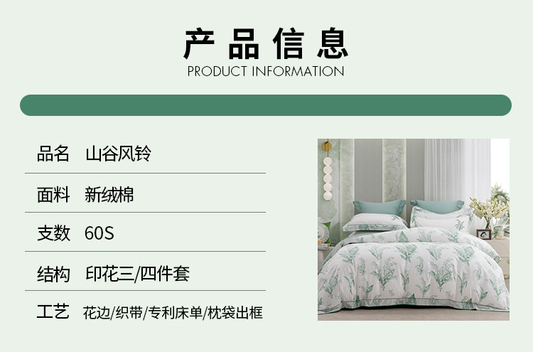 多喜爱 60S贡缎长绒棉清新花卉三/四件套 山谷风铃/聆听幸福