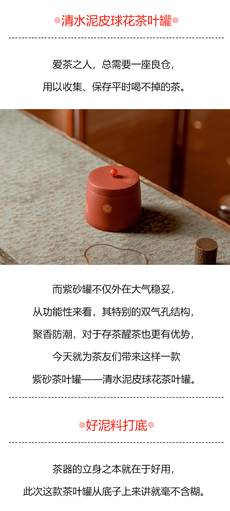 茶香记 紫砂清水泥 皮球花茶叶罐 好泥料打底 精致好用 宜用宜品
