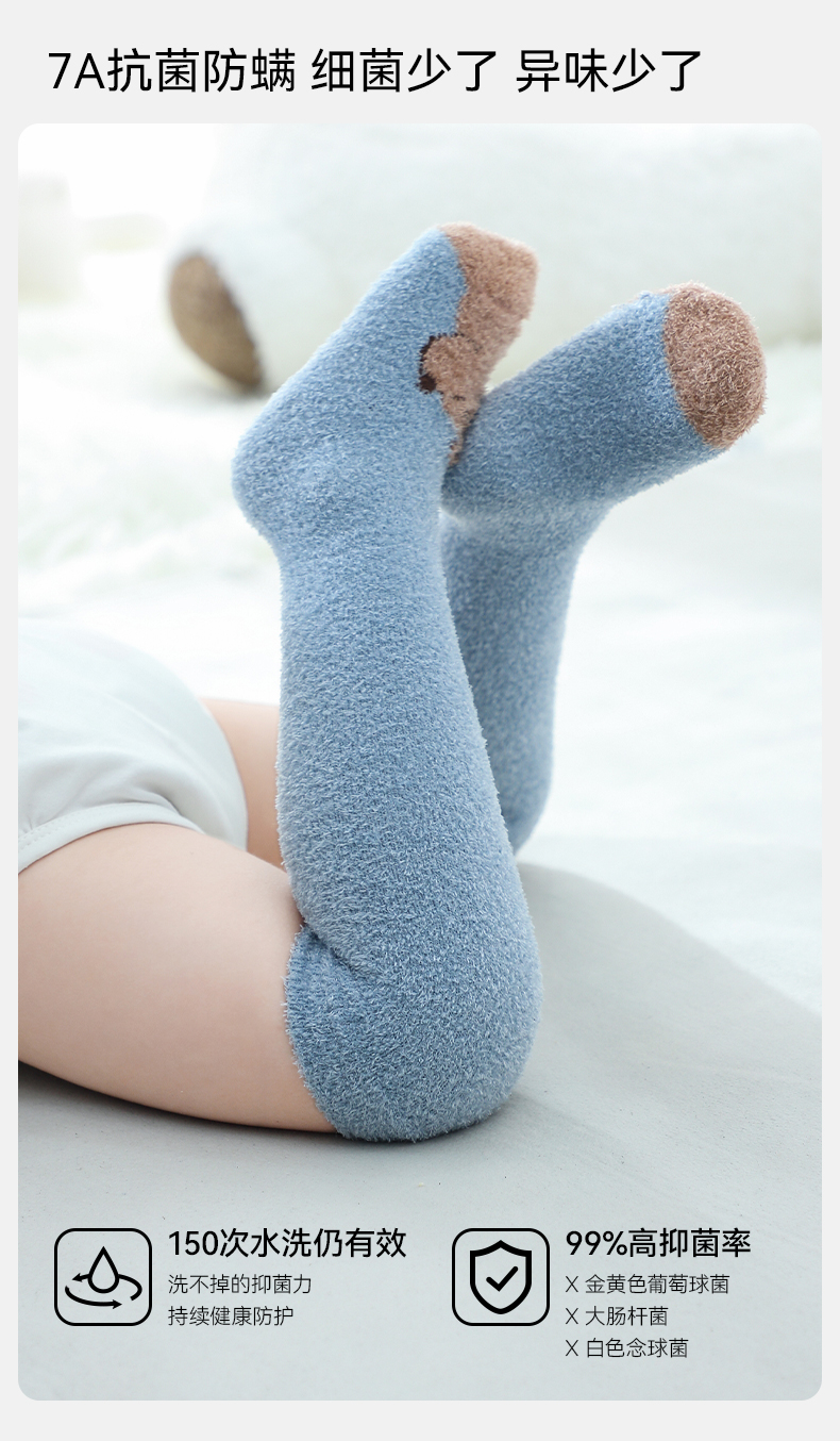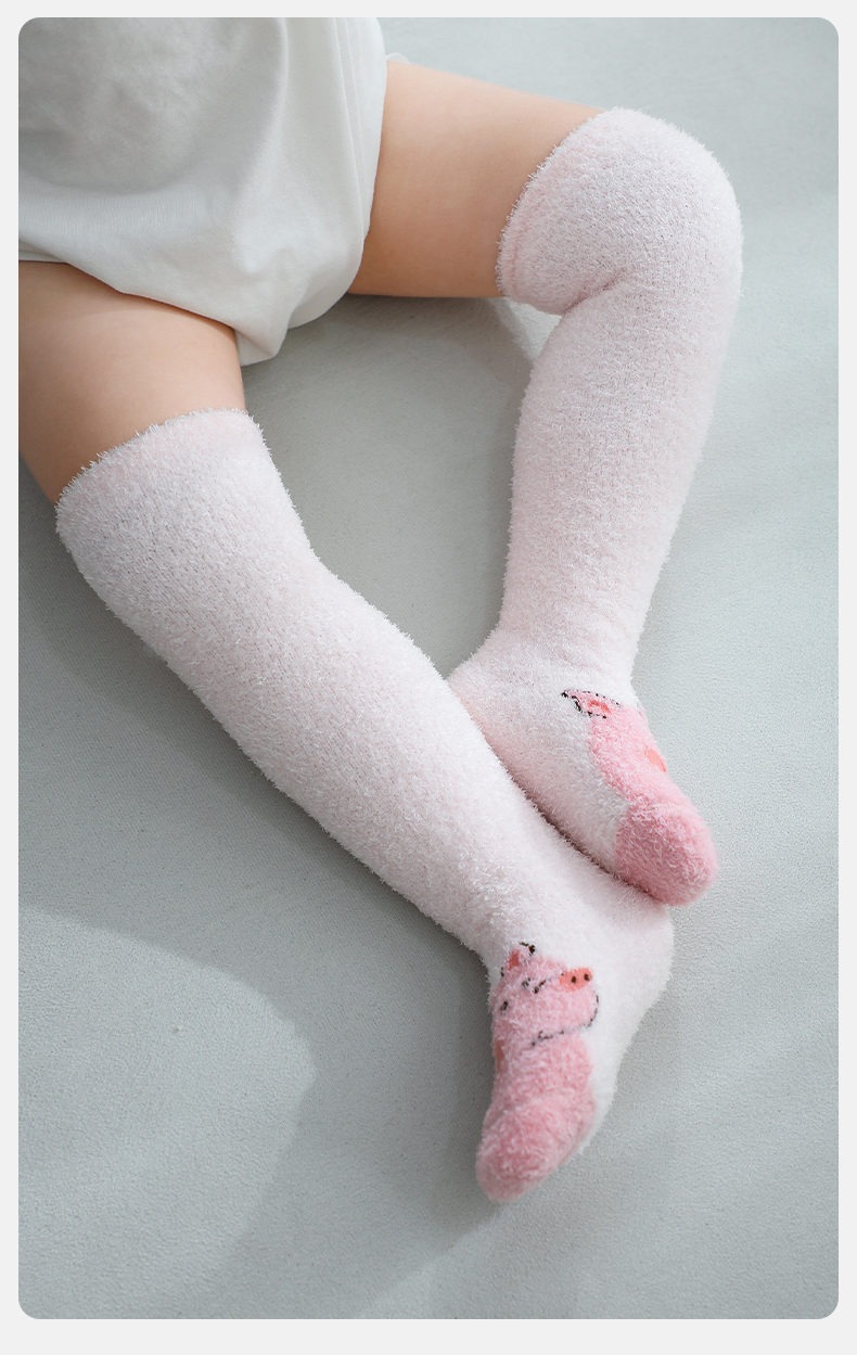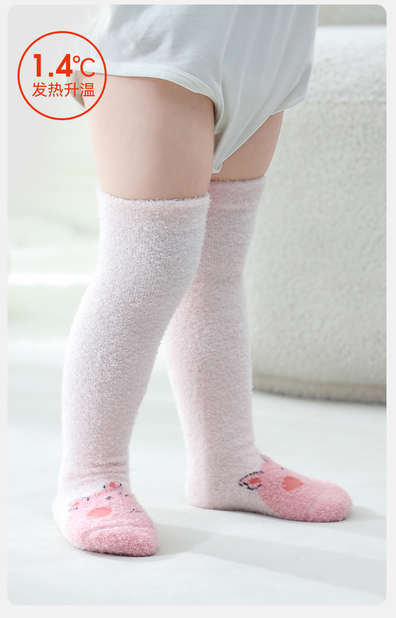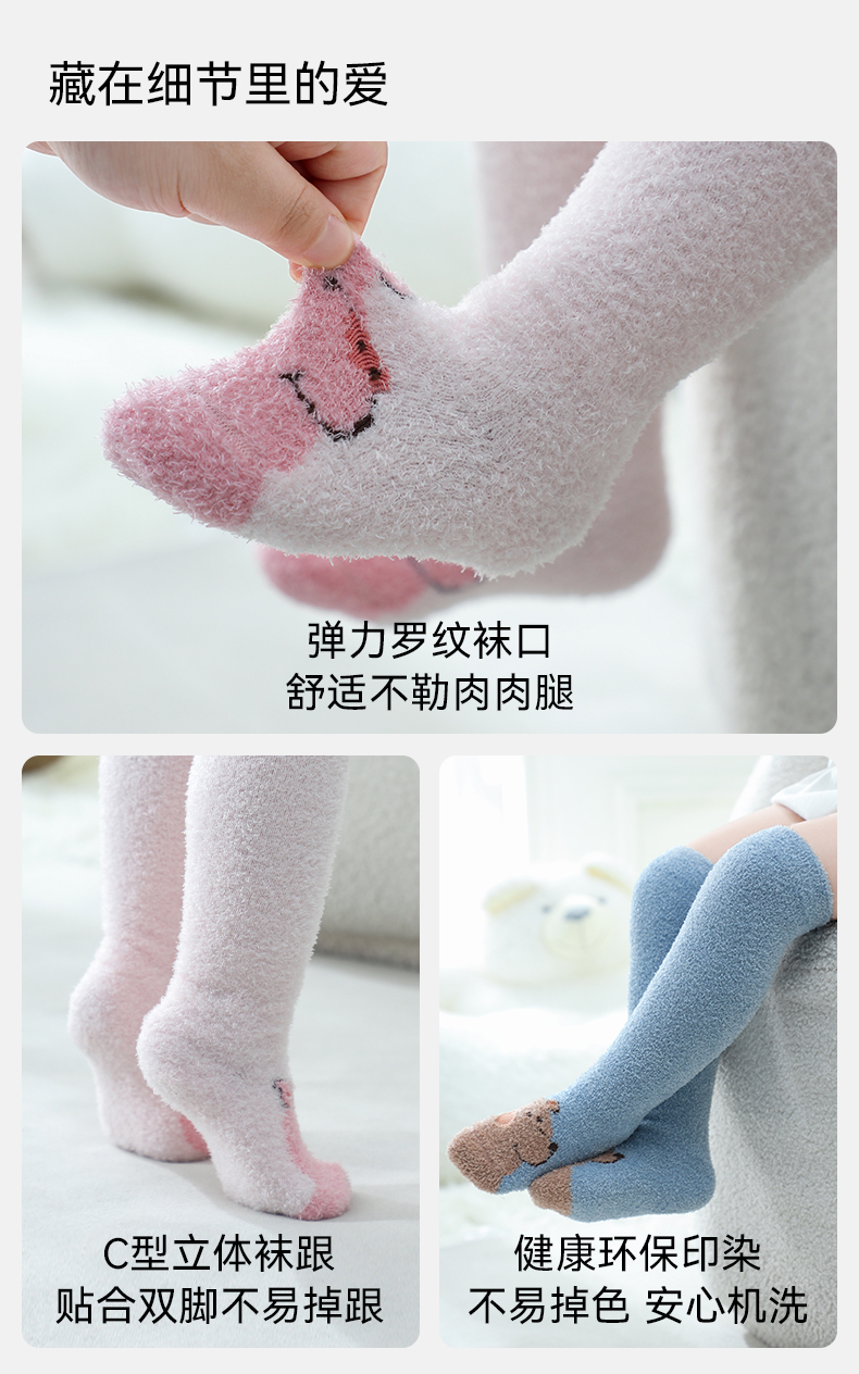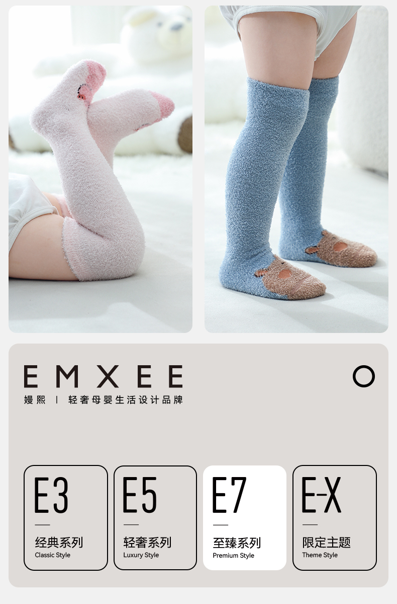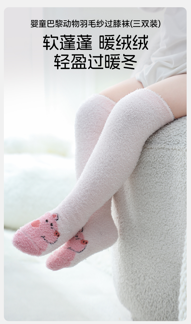 EMXEE嫚熙儿童袜子秋冬款男女童巴黎动物羽毛纱过膝宝宝袜三双装