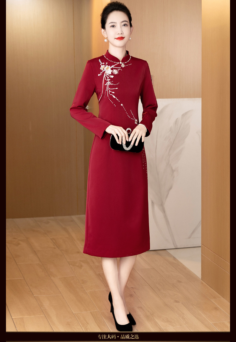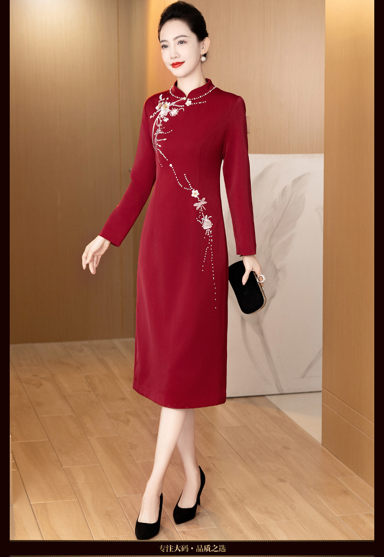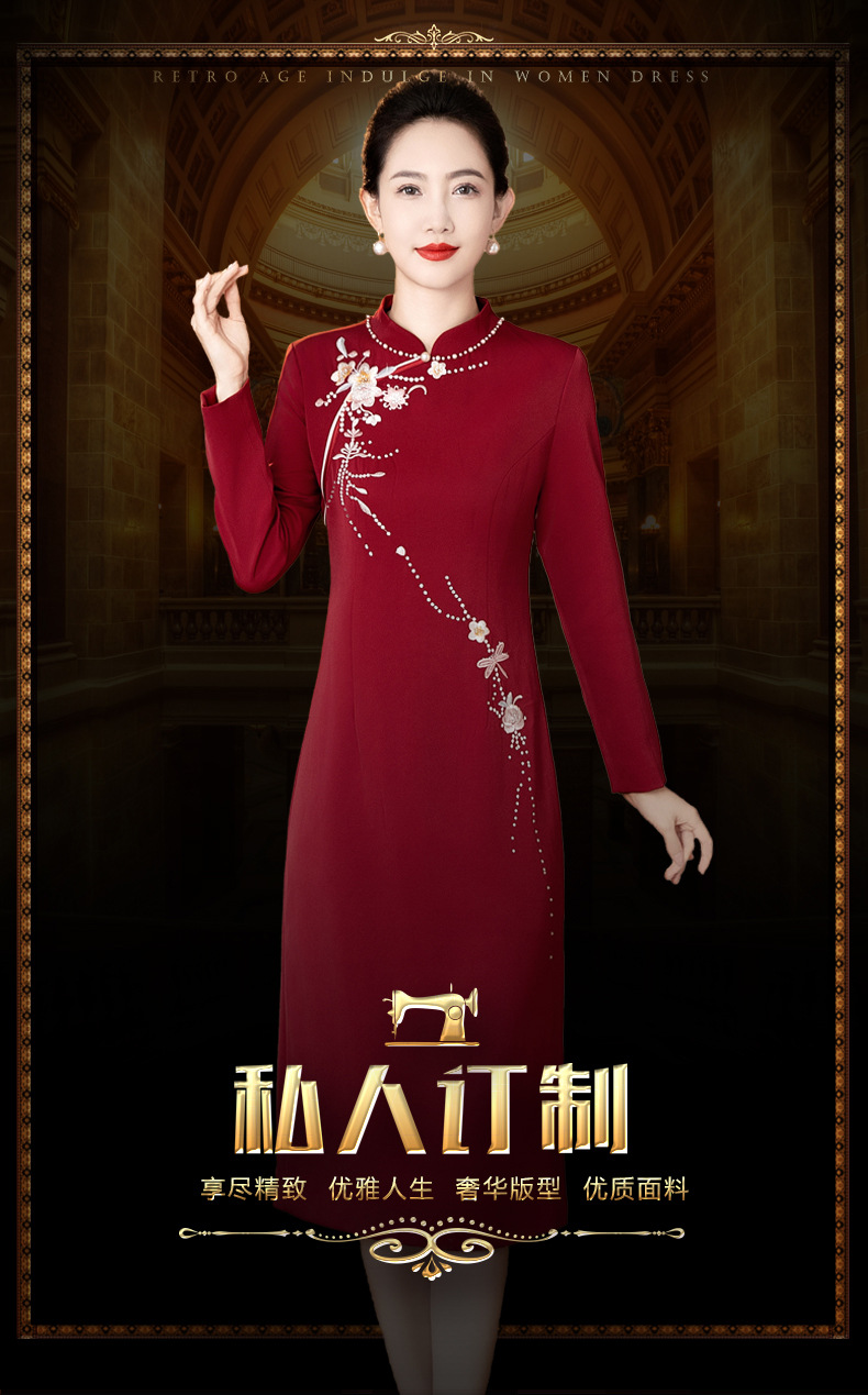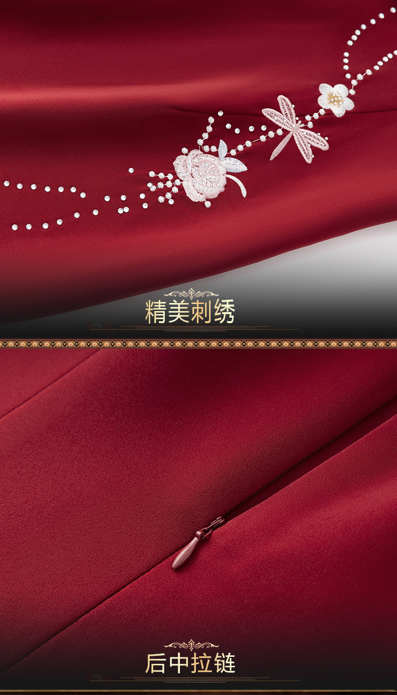 LC-LC2459婚礼服秋冬新款刺绣高贵喜婆婆婚宴装改良旗袍连衣裙