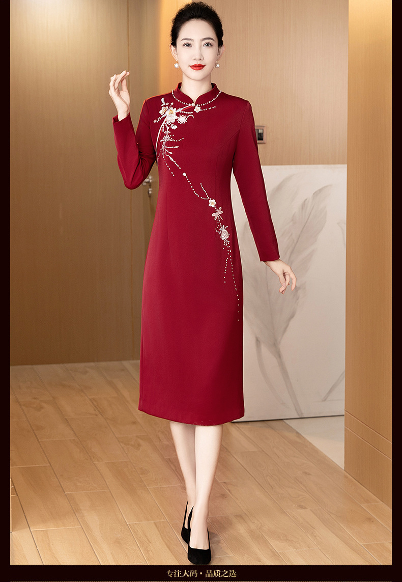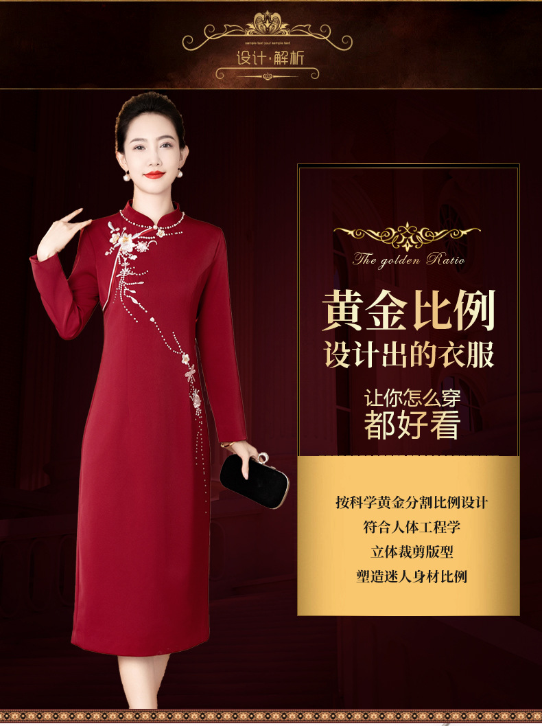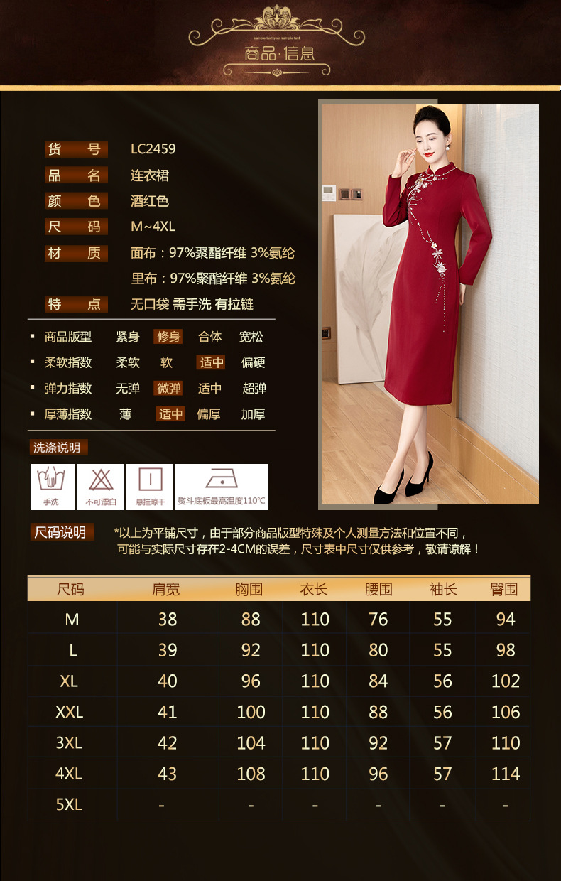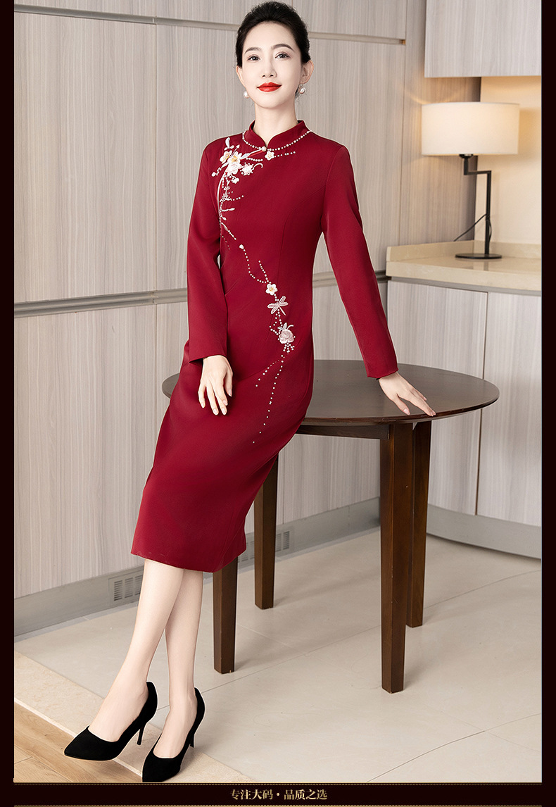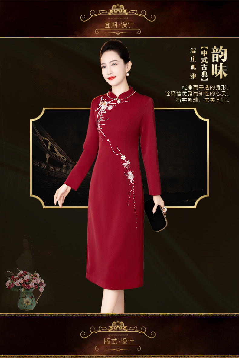 LC-LC2459婚礼服秋冬新款刺绣高贵喜婆婆婚宴装改良旗袍连衣裙