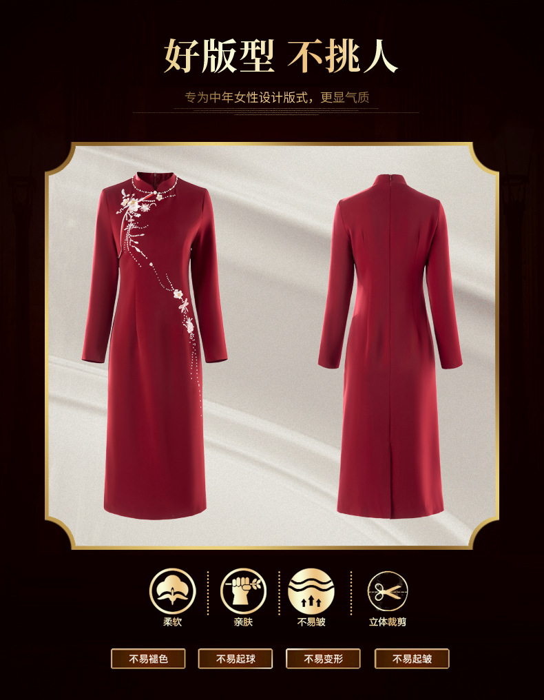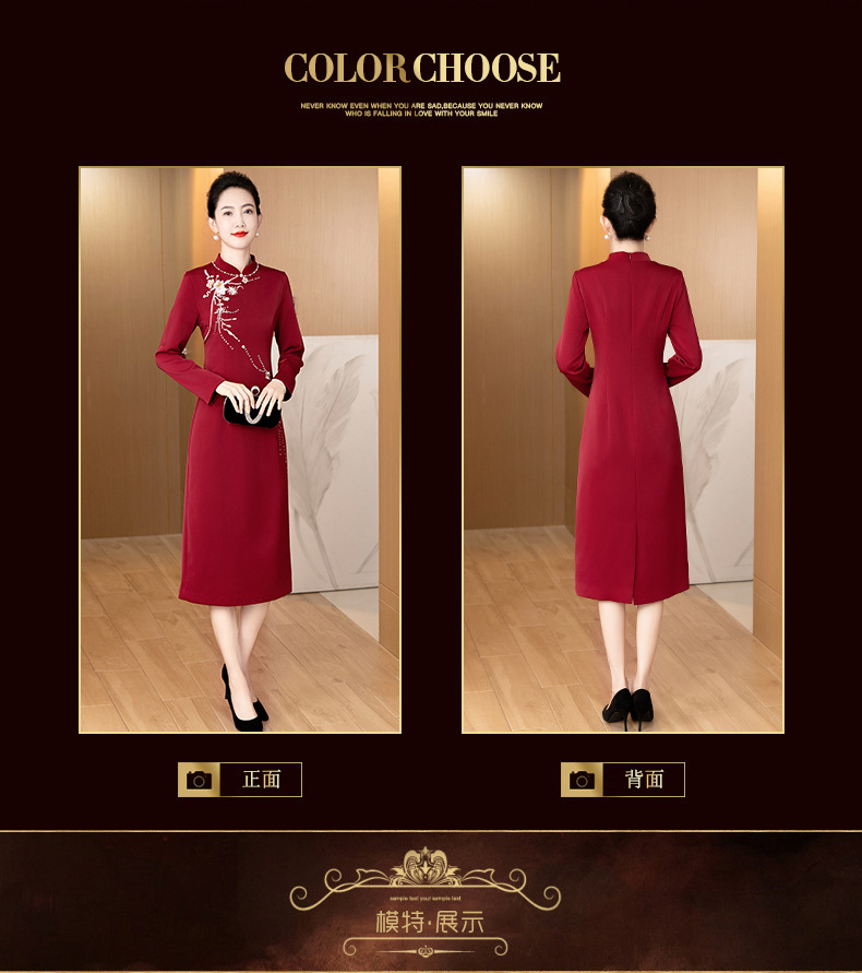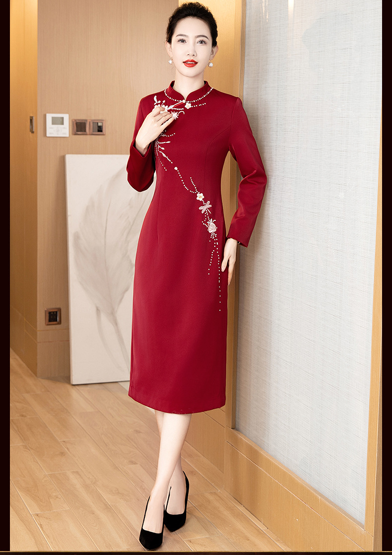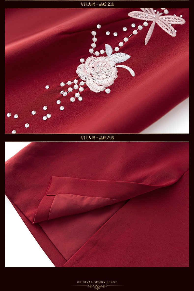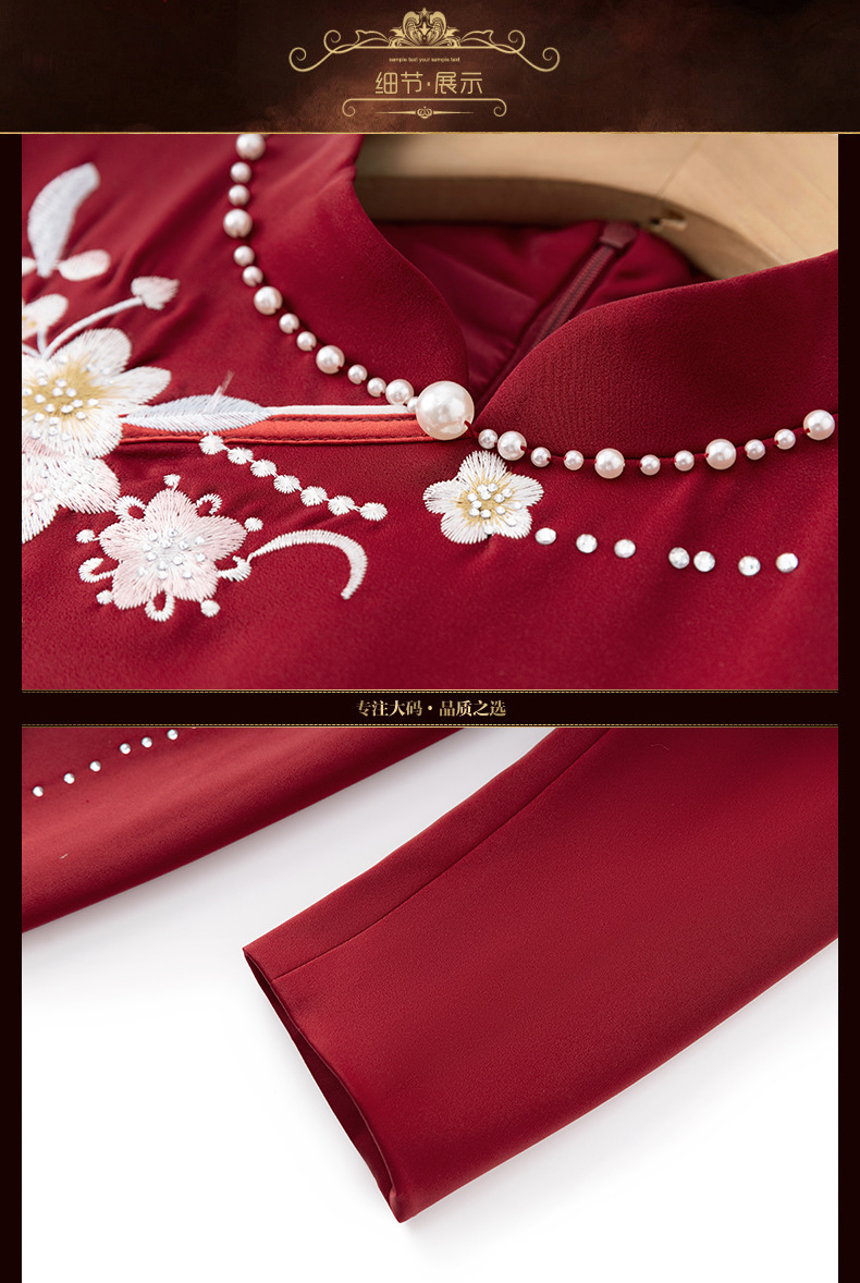 LC-LC2459婚礼服秋冬新款刺绣高贵喜婆婆婚宴装改良旗袍连衣裙