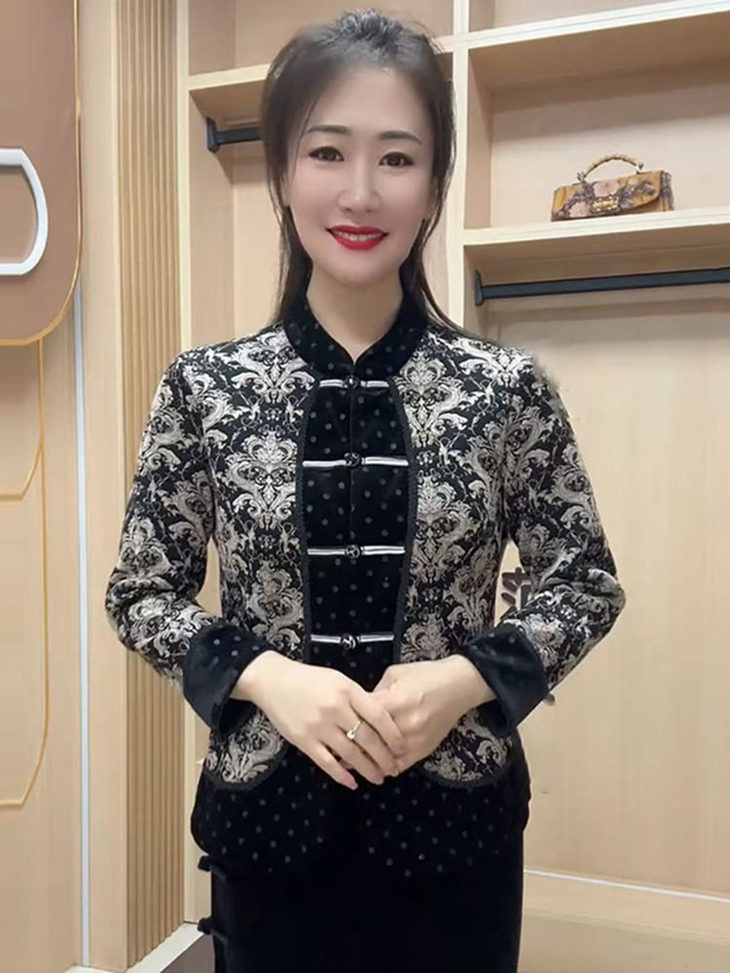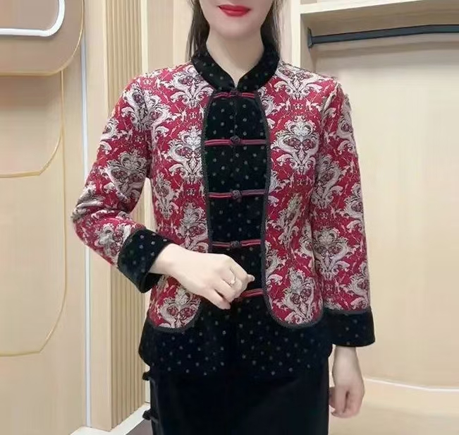 A1011秋冬外套唐装新款高档中老年国风拼接设计中式盘扣花色妈妈旗袍衫