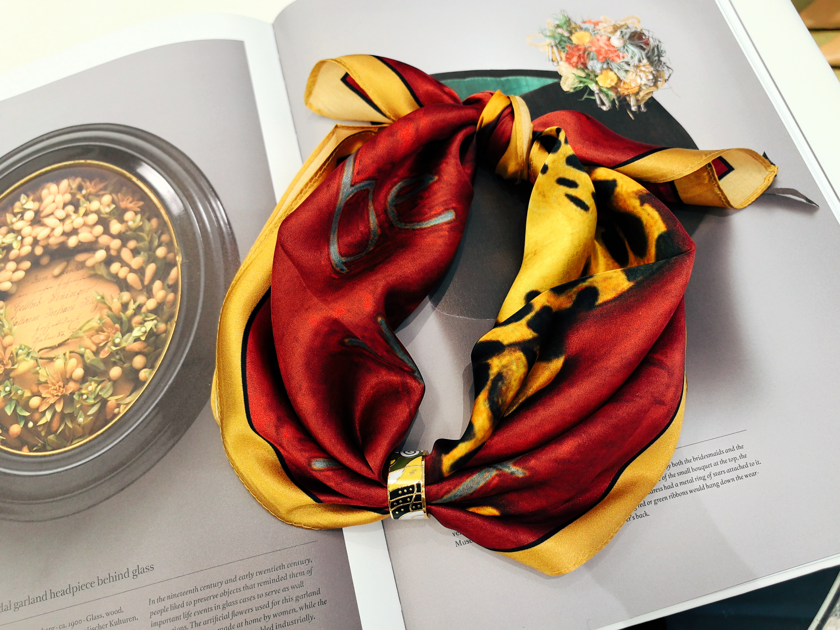 【甄珠贝·油画艺术风系列】53*53cm做自己小豹子丝巾和珐琅丝巾扣礼盒套装