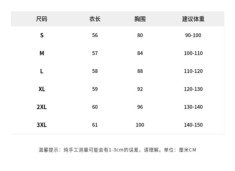 因裁剪工艺和丈量手法不同,可能存在1~3CM 左右误差,尺码仅供参考,以实物为准