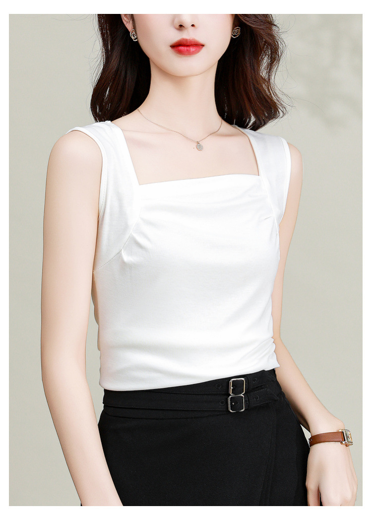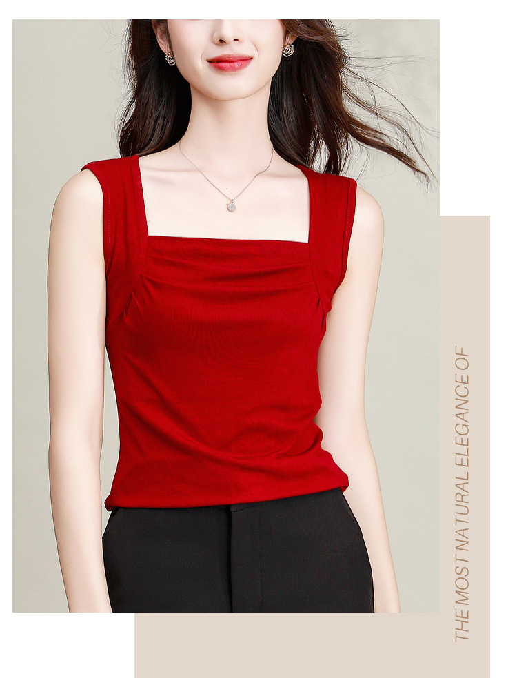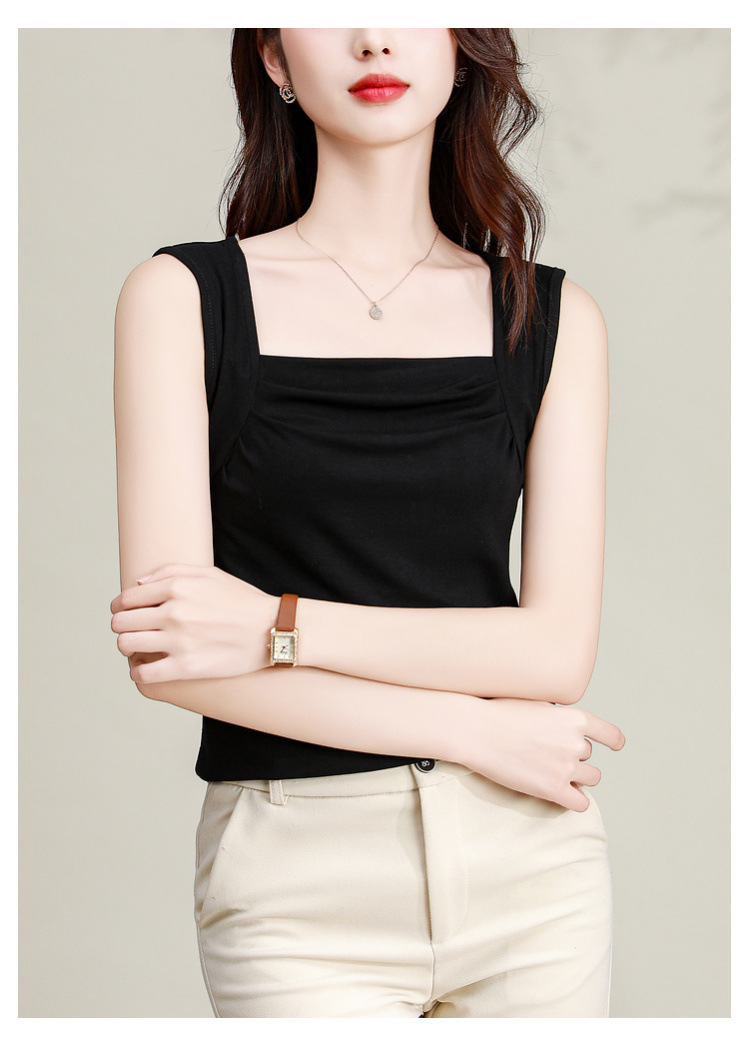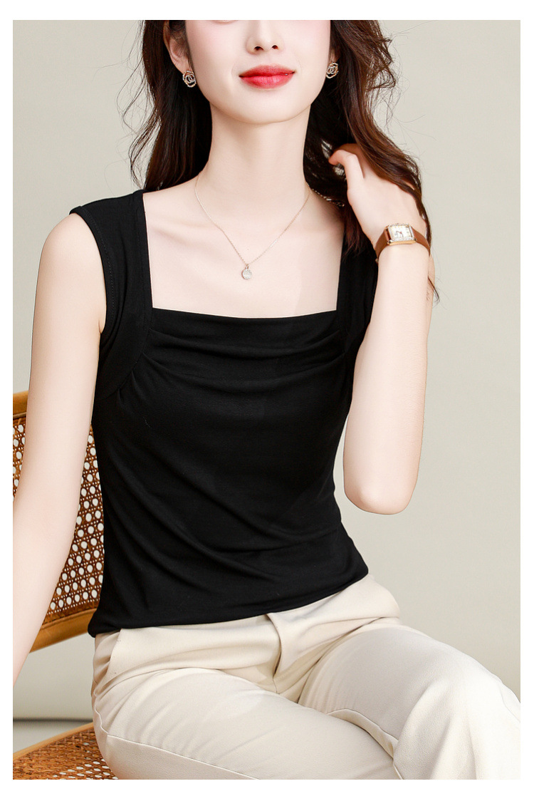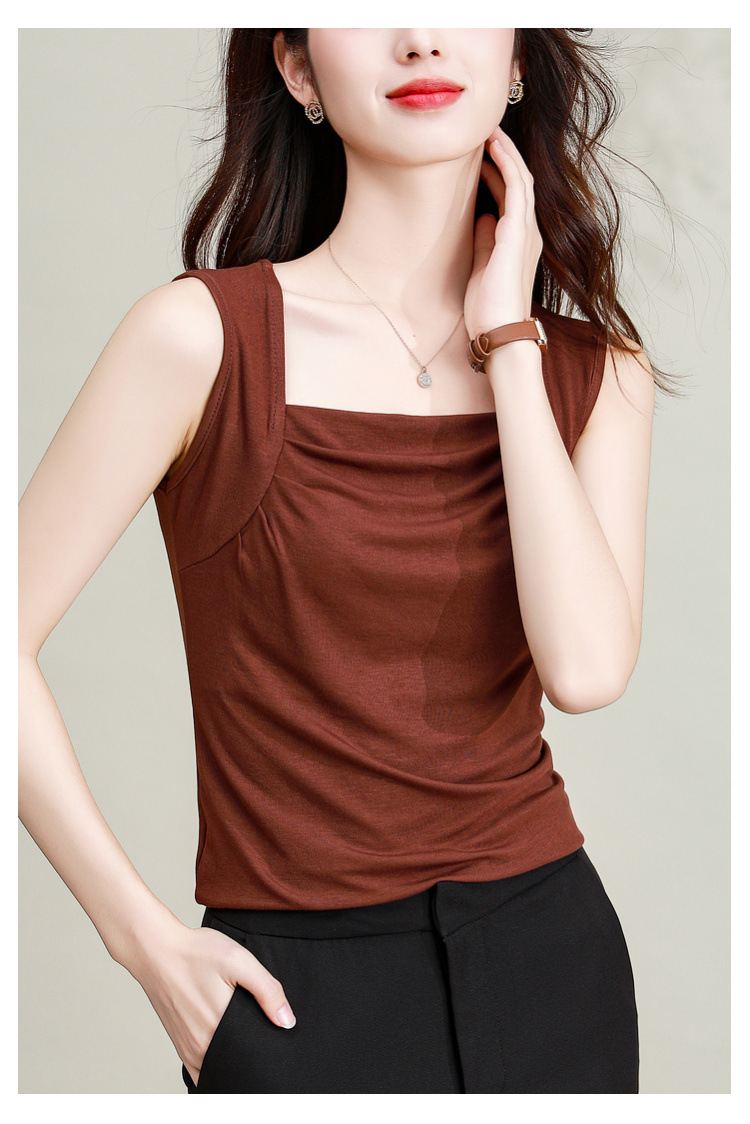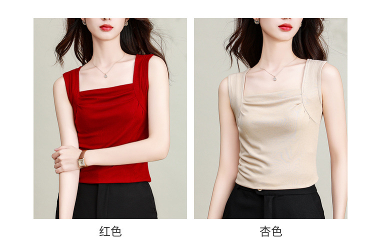 纯色莫代尔方领简约,时尚背心修身显瘦打底小衫KQL-E001M6911