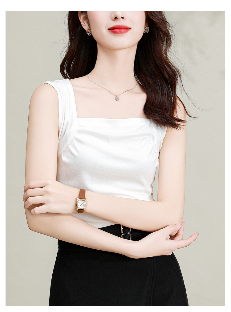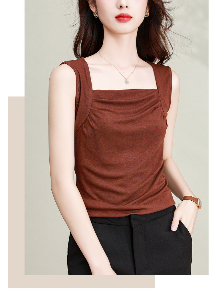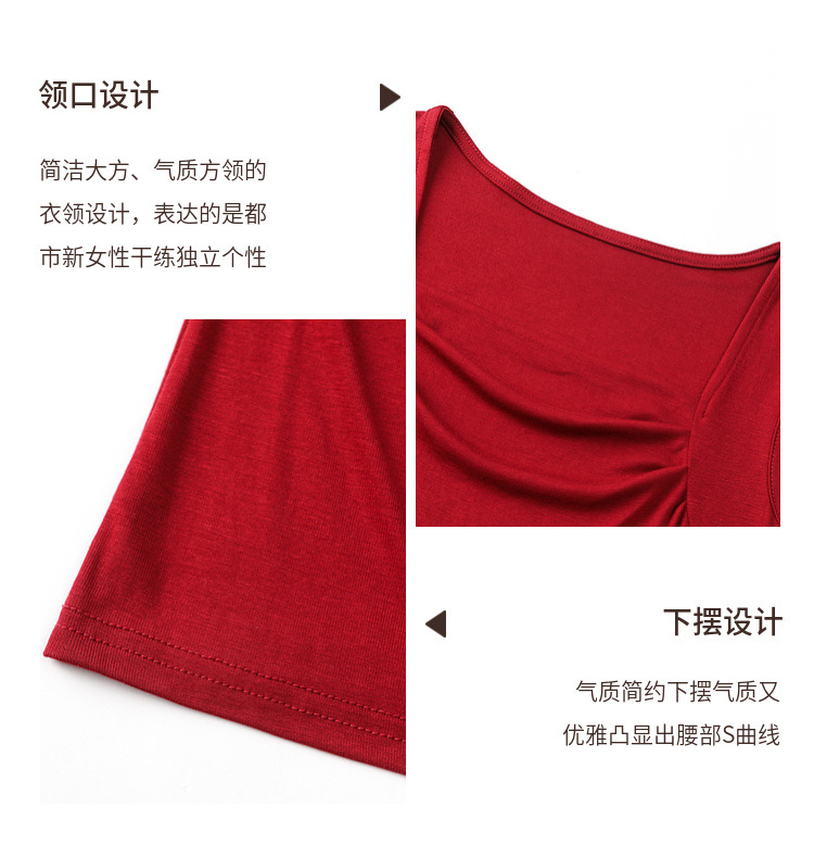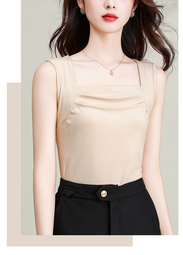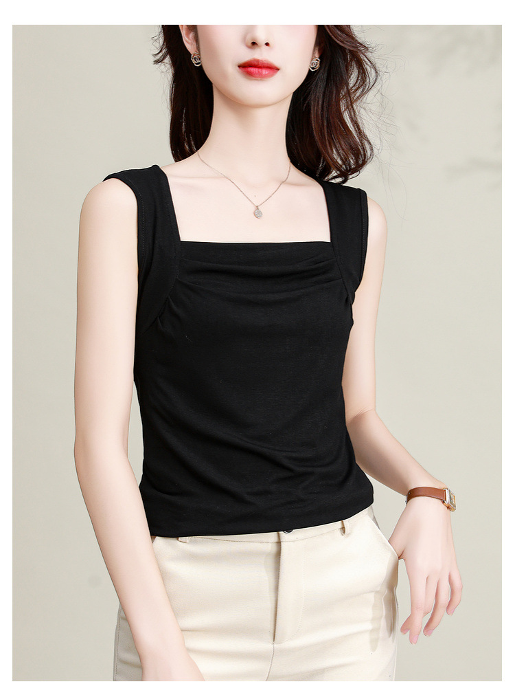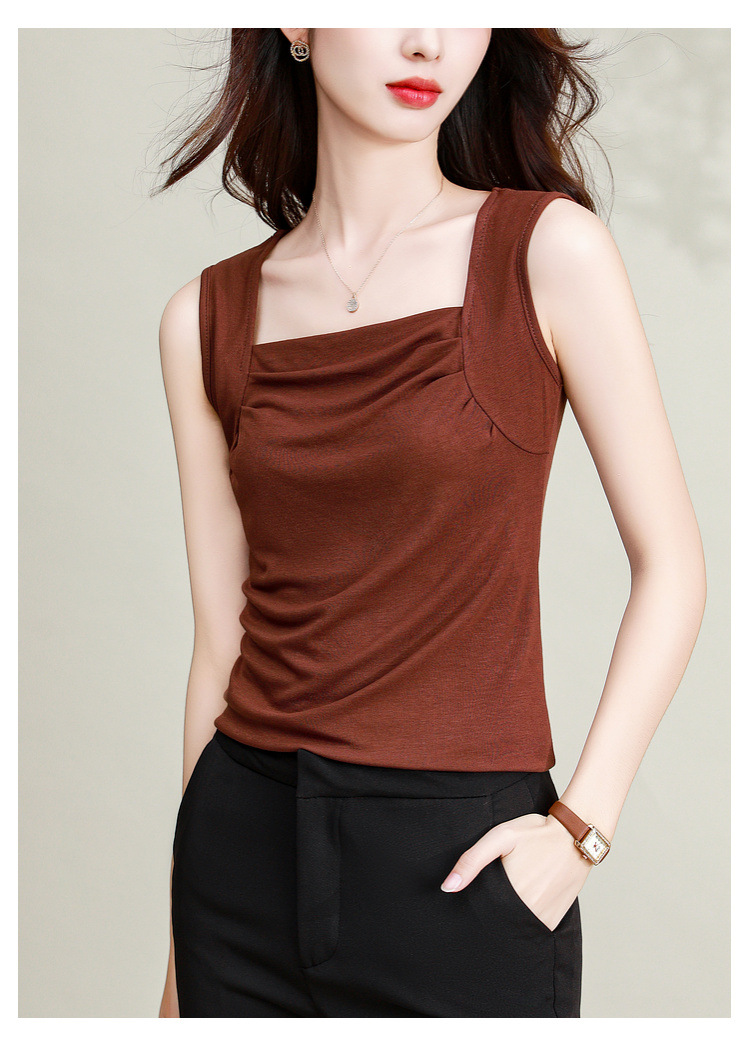 纯色莫代尔方领简约,时尚背心修身显瘦打底小衫KQL-E001M6911