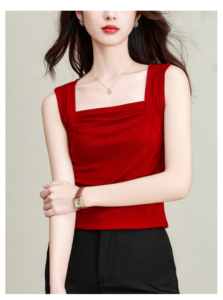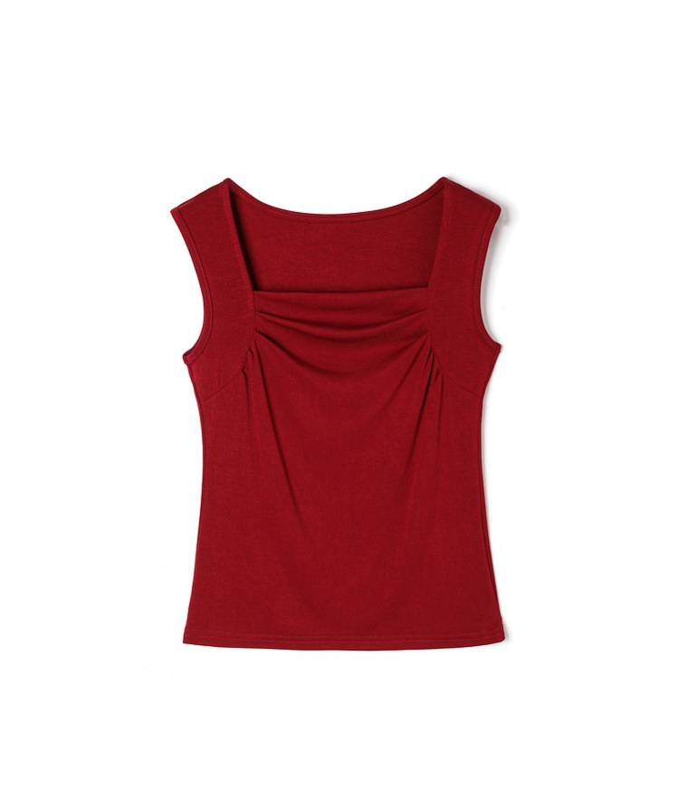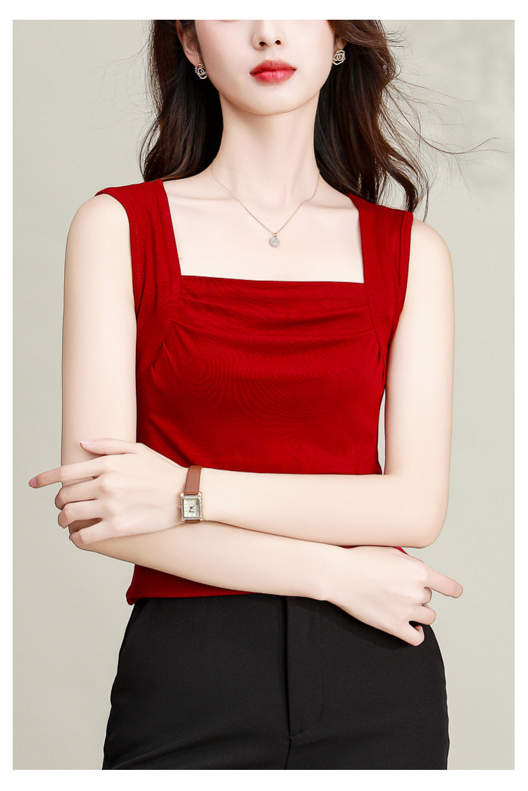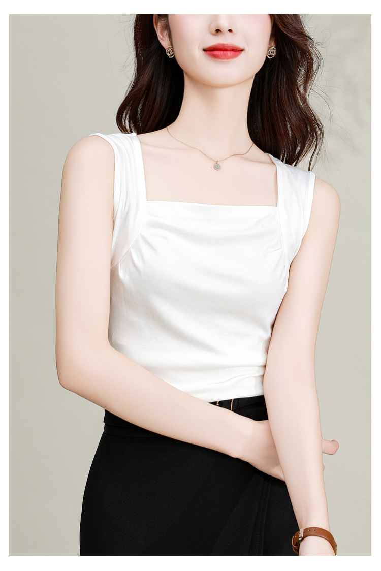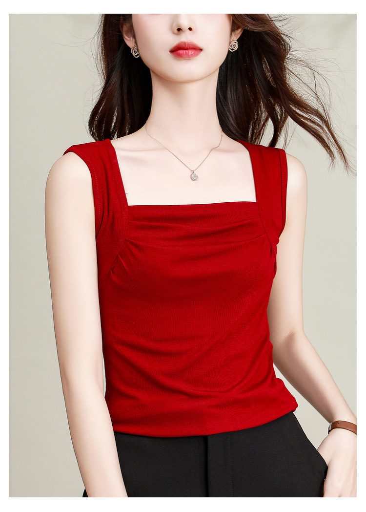 纯色莫代尔方领简约,时尚背心修身显瘦打底小衫KQL-E001M6911